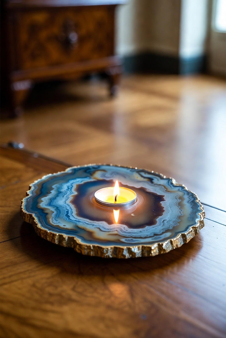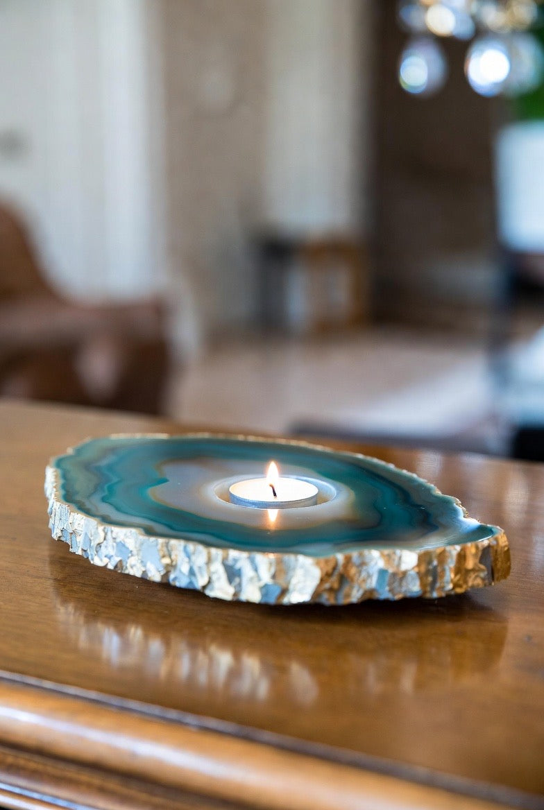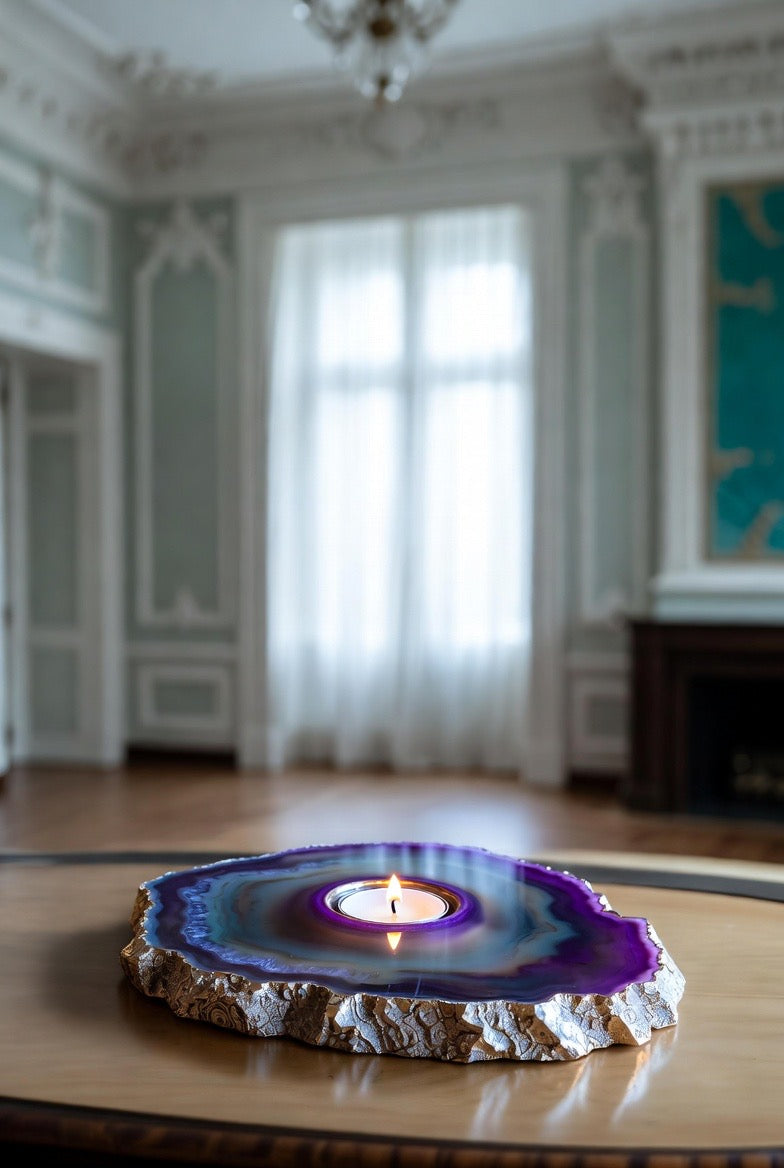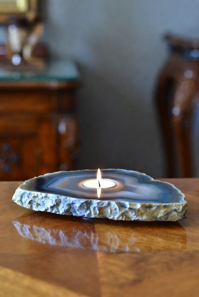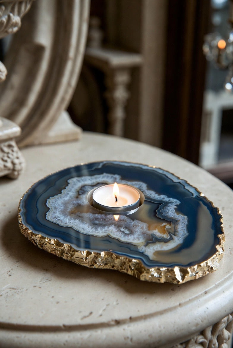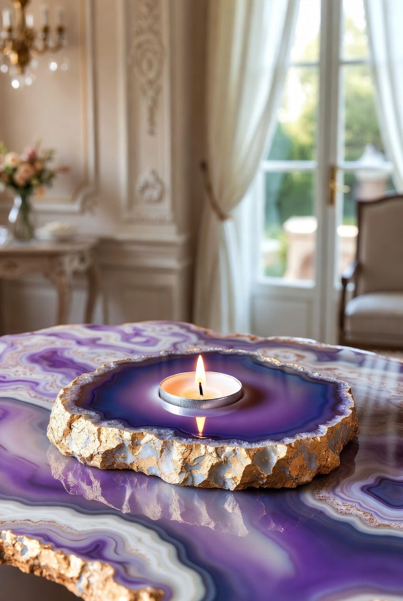 Each natural agate slice is polished to perfection, bringing luxury, color, and glowing elegance to your home. And yes — each holder includes a FREE tealight candle! 🕯️🎁