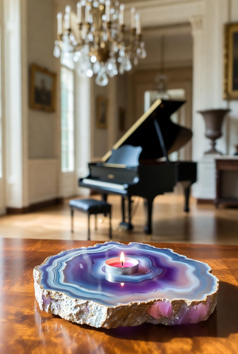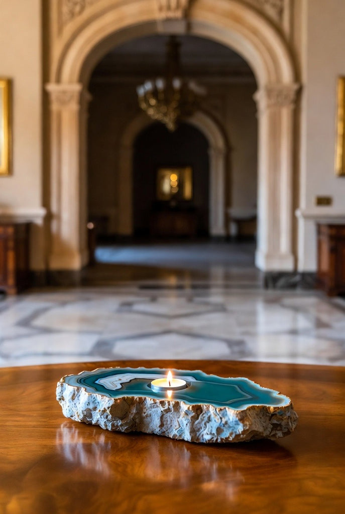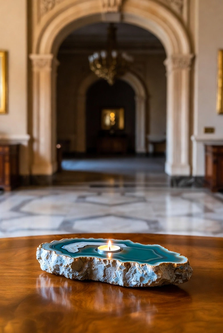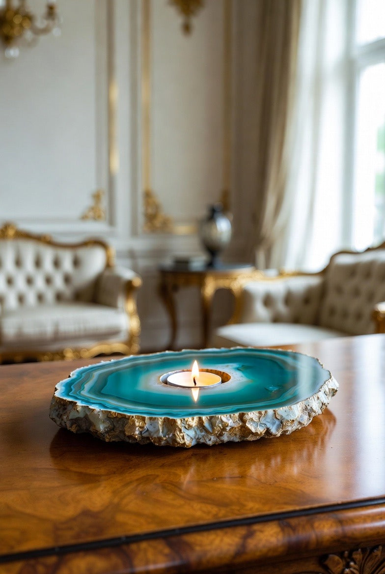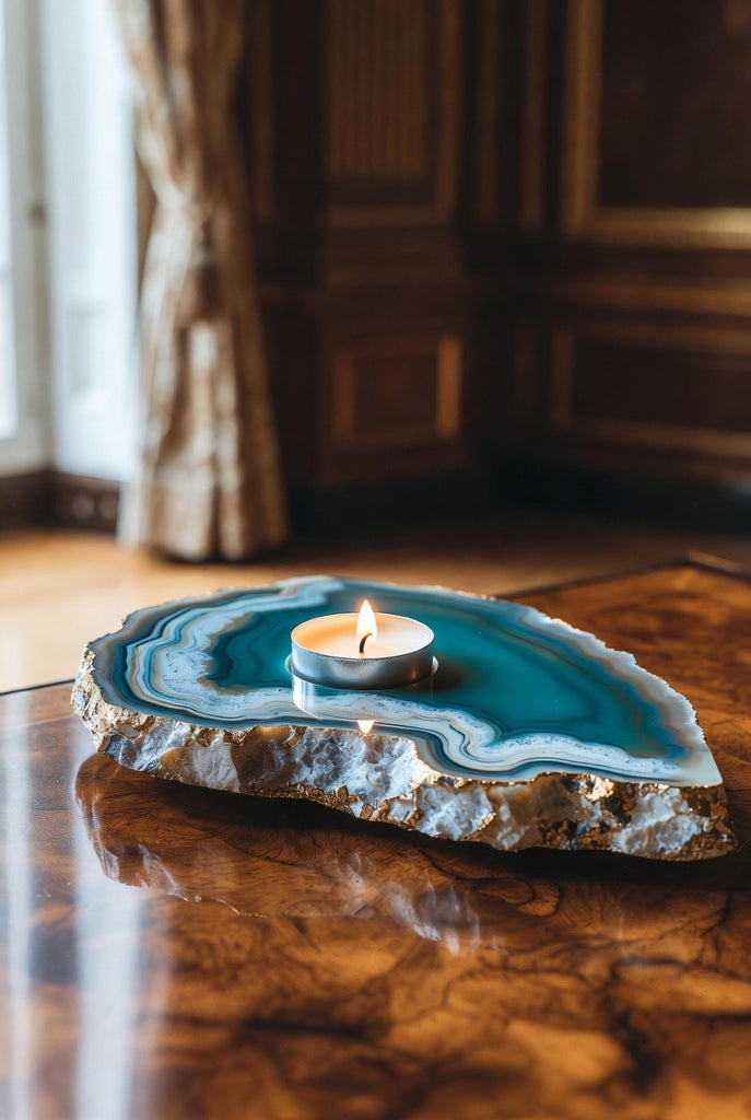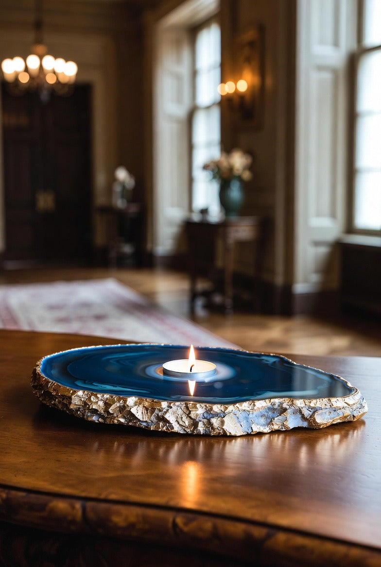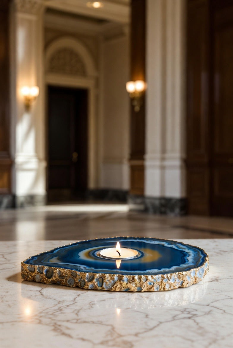 Each natural agate slice is polished to perfection, bringing luxury, color, and glowing elegance to your home. And yes — each holder includes a FREE tealight candle! 🕯️🎁