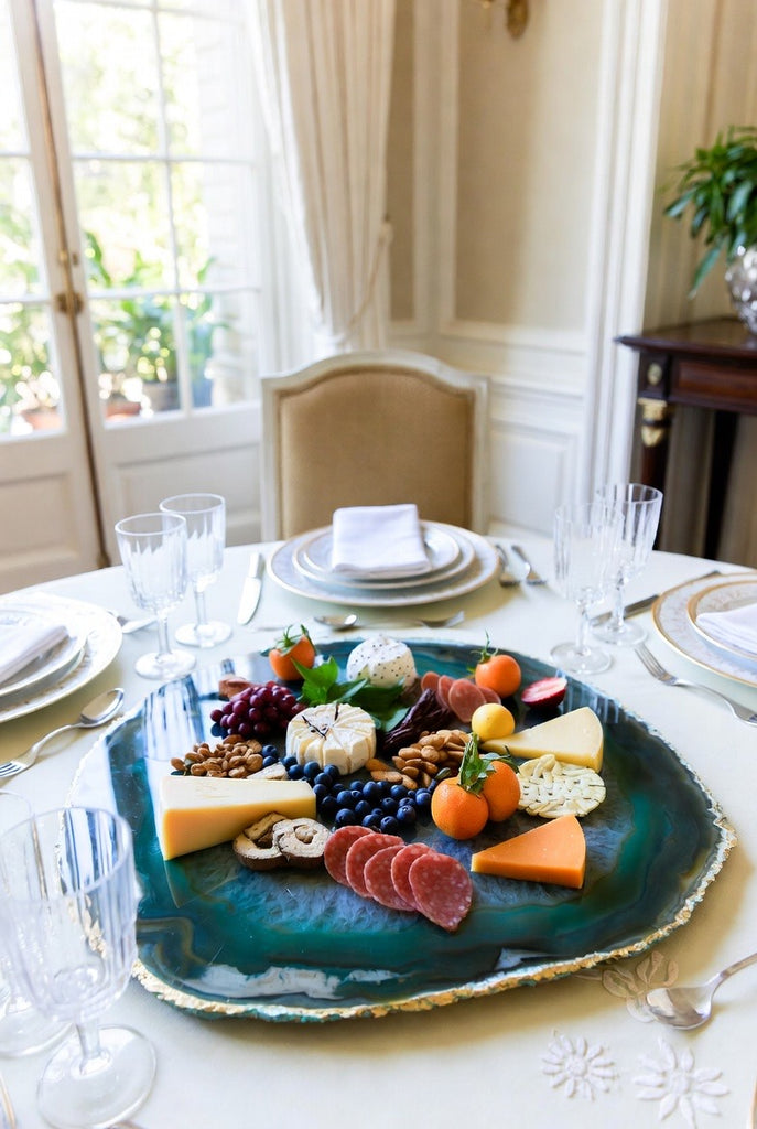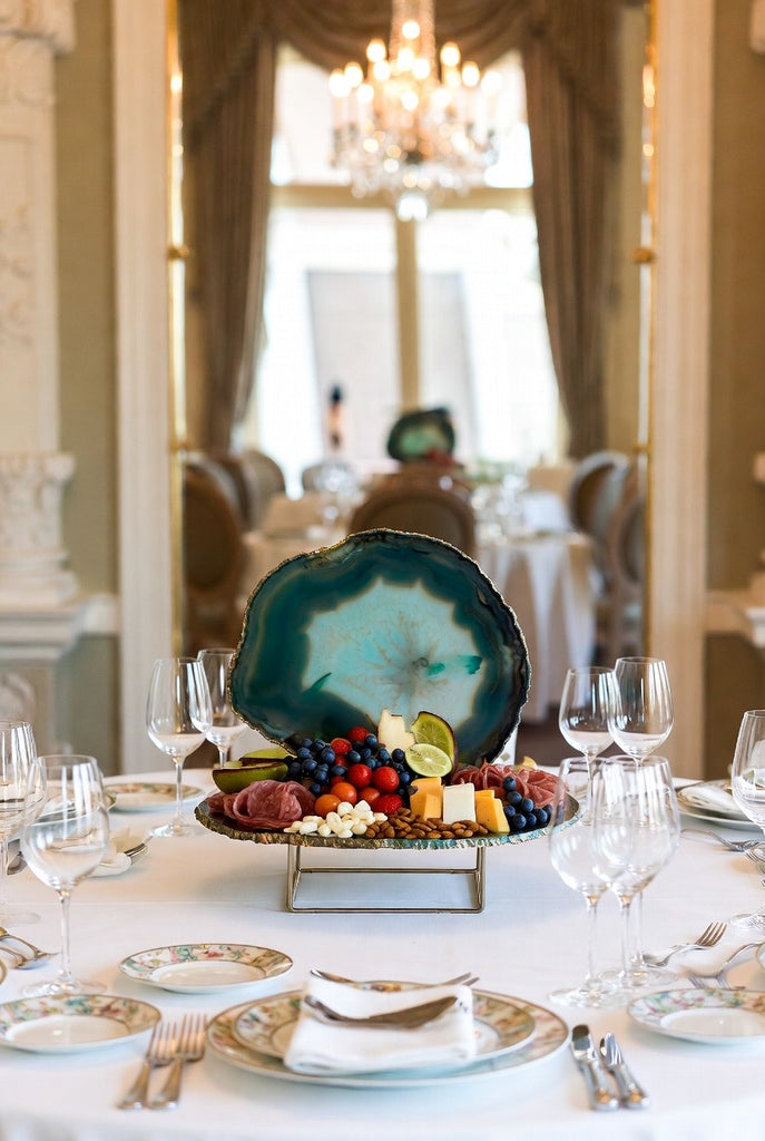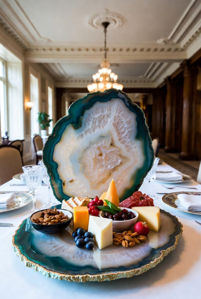Transform your entertaining with a show-stopping serving tray carved from genuine agate. Each oversized slice features mesmerizing crystal patterns, a high-gloss finish, and natural edging—creating a statement piece that blurs the line between serveware and art.