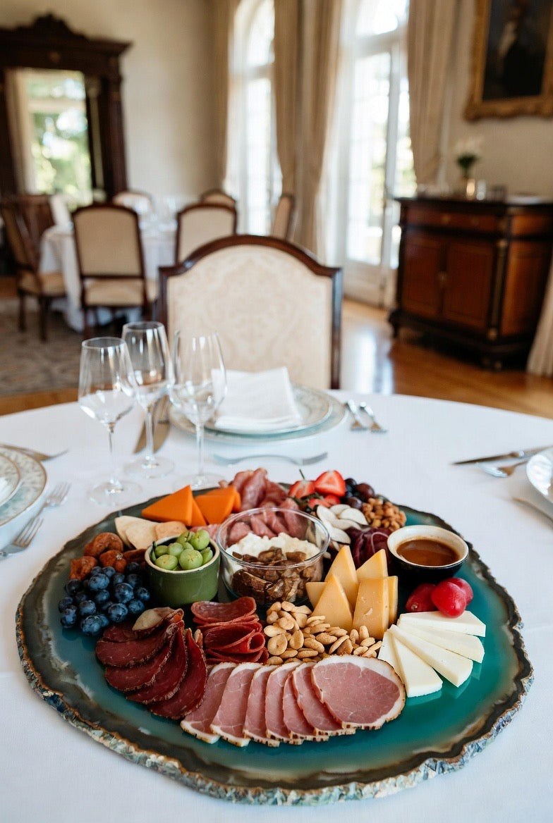 Perfect for elegant gatherings, lavish charcuterie spreads, or as a striking centerpiece, this tray delivers: