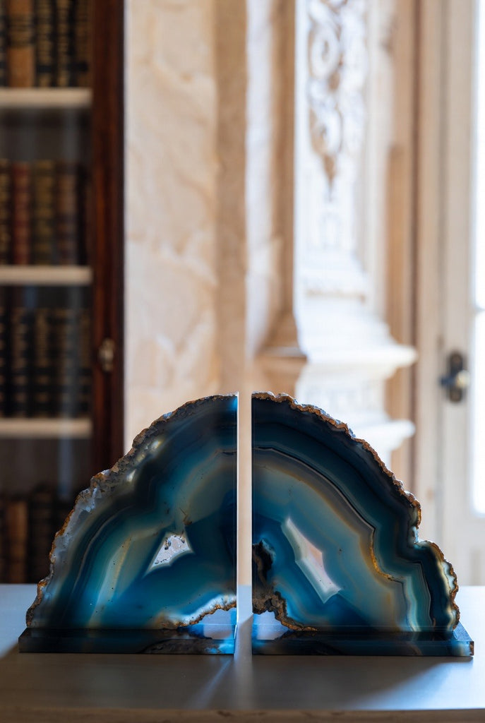 This listing is for 1 (one) BLUE Agate Bookend Pair. Yours will arrive lovingly parceled and ready for enjoyment!