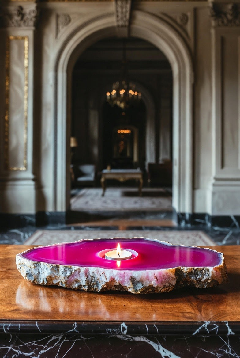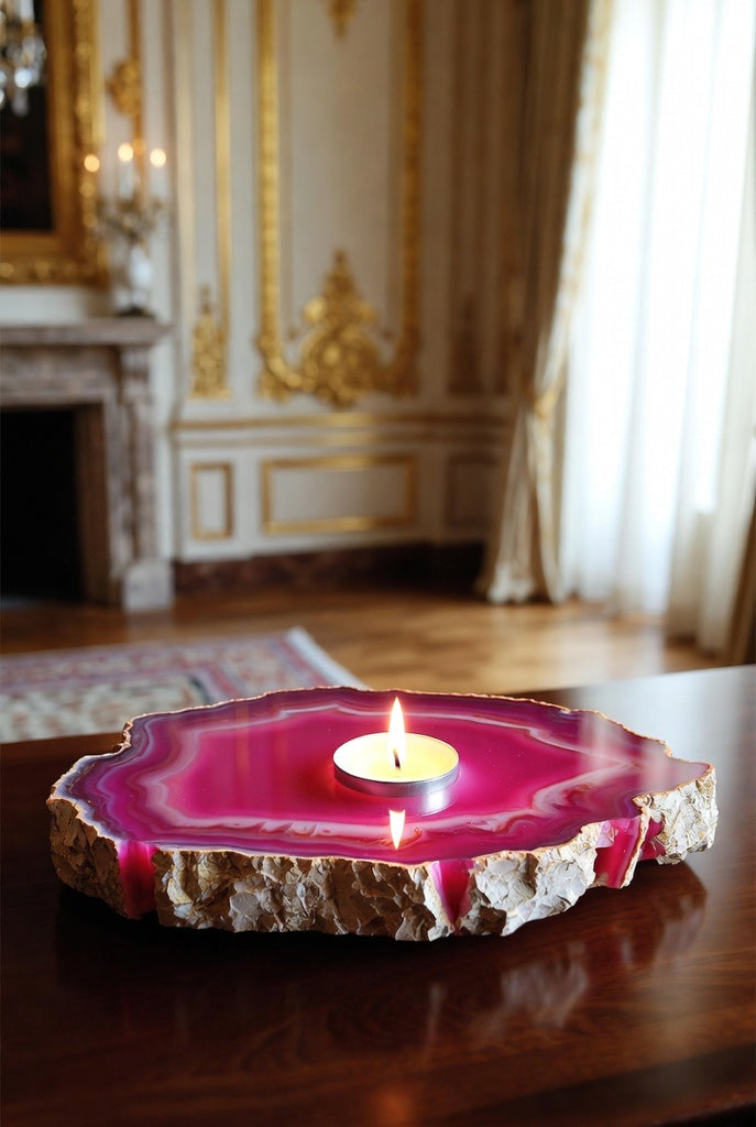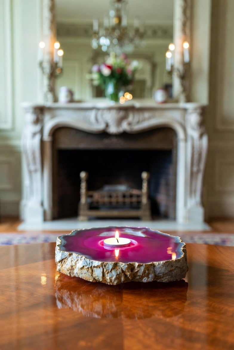This listing is for 1 (one) PINK Agate Slab Candleholder with tea light candle included! Yours will arrive lovingly parceled and ready for enjoyment!