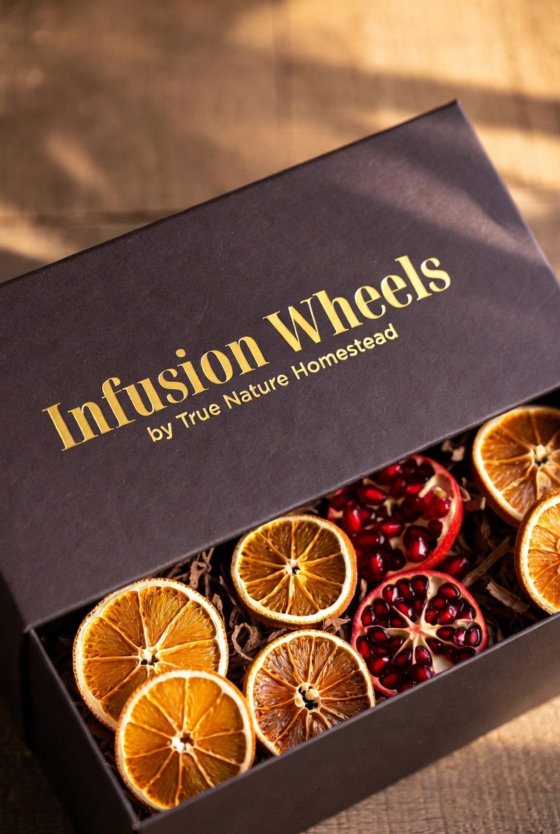 Bring forest-inspired elegance to your drinks with our small-batch, gourmet Beverage Infusion Wheels, lovingly handcrafted on our homestead in Black Forest, Colorado 🏔️🌲—inspired by magical outdoor garden parties beneath the pine trees ✨