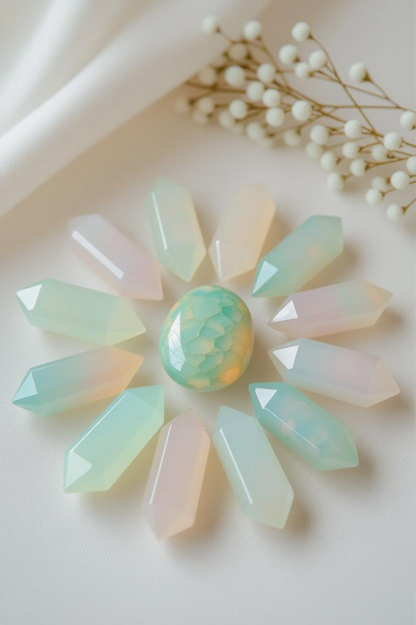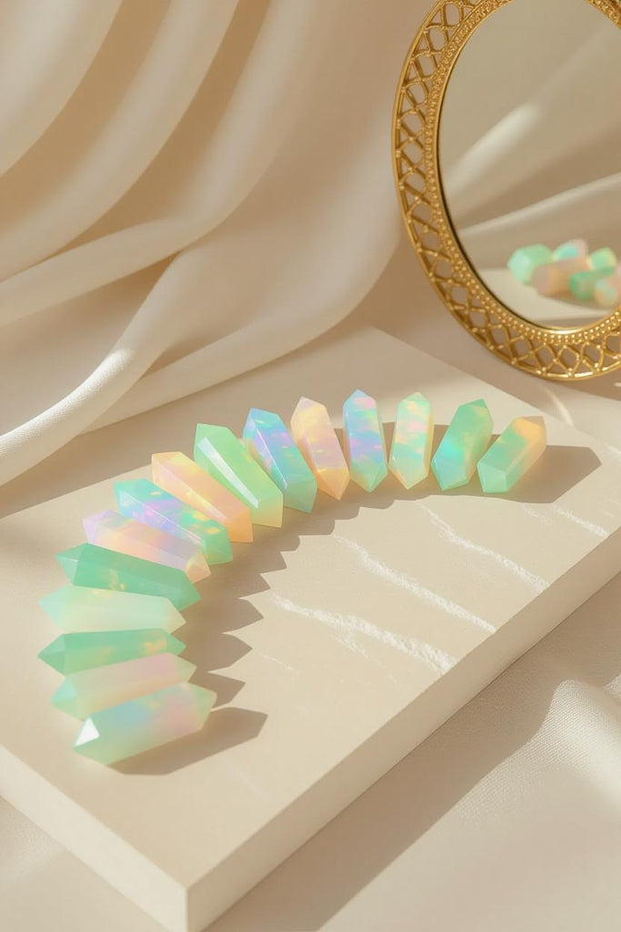Softly glowing with hues of pearl, moonlight, and ice, the Polished Opalite Double-Terminated Point is a refined accent for interiors that crave quiet luxury. Designed to reflect light and intention, this sculptural crystal radiates calm and clarity — a modern touch of magic for your curated space.