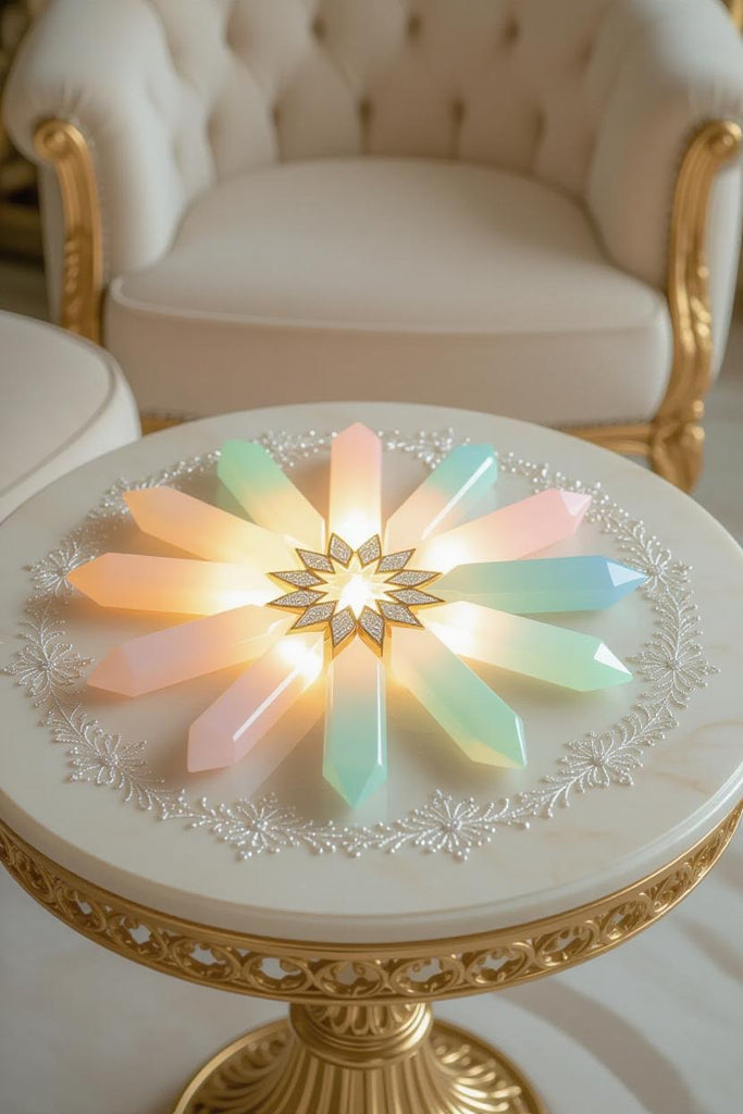 Layer with smoked glass, soft linens, or mirrored trays for a subtle, glowing contrast.