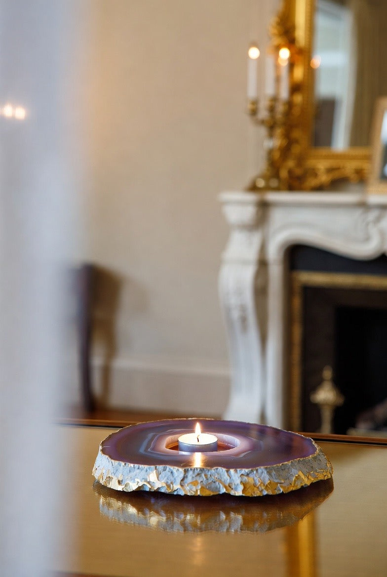 This listing is for 1 (one) PURPLE Agate Slab Candleholder with tea light candle included! Yours will arrive lovingly parceled and ready for enjoyment!