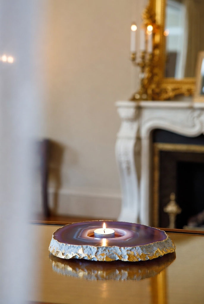 Each candleholder is carved from genuine agate, showcasing unique patterns and mesmerizing crystal depth — no two are ever alike!
