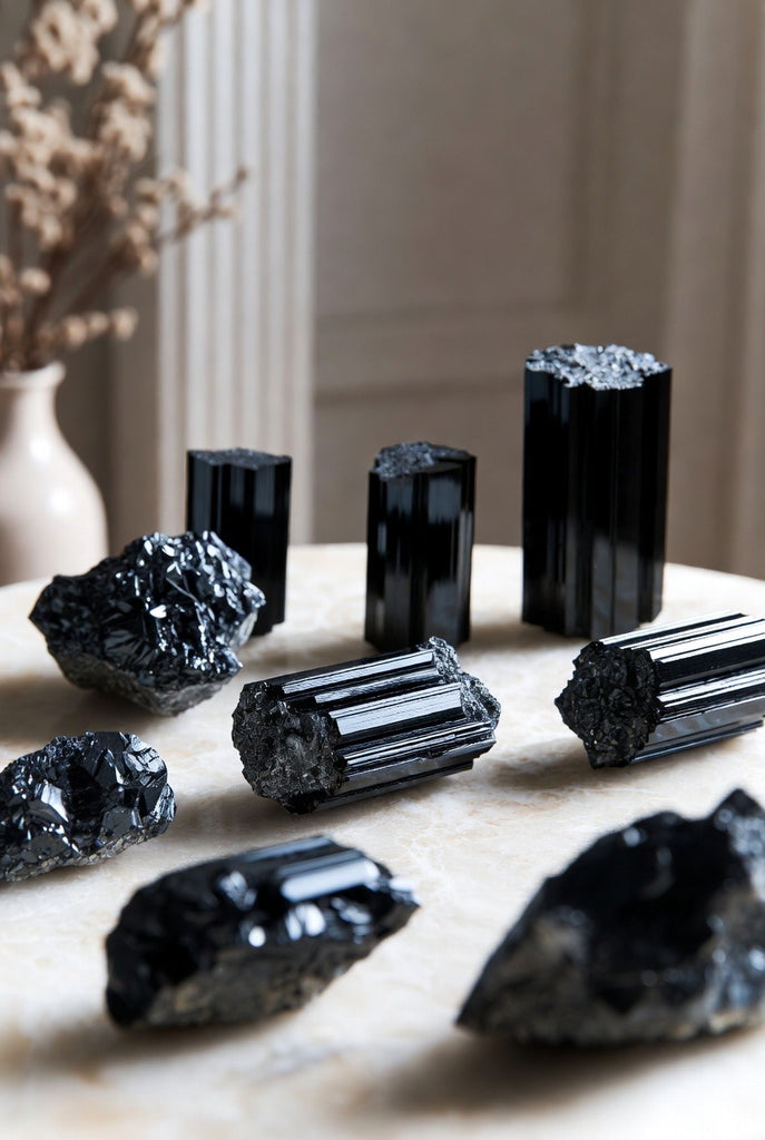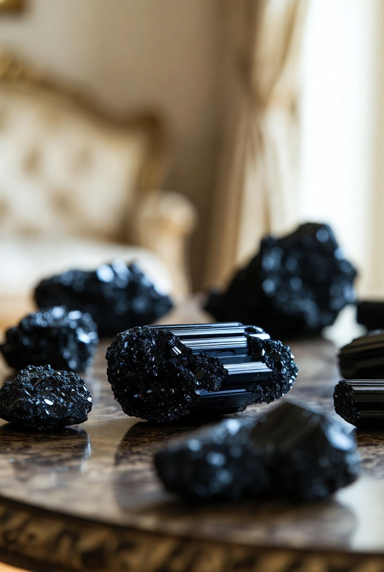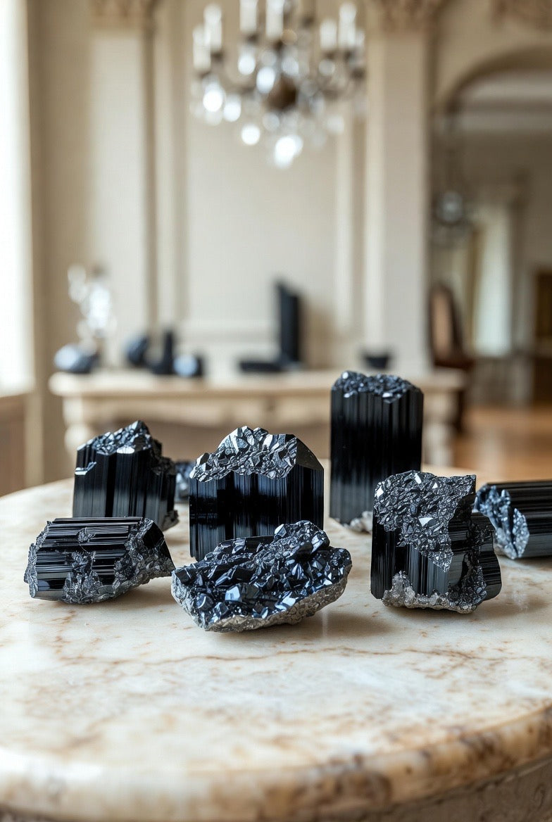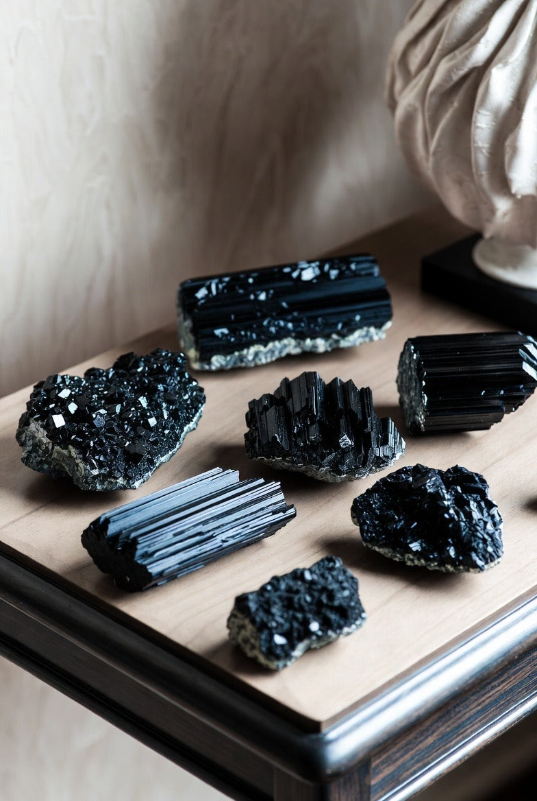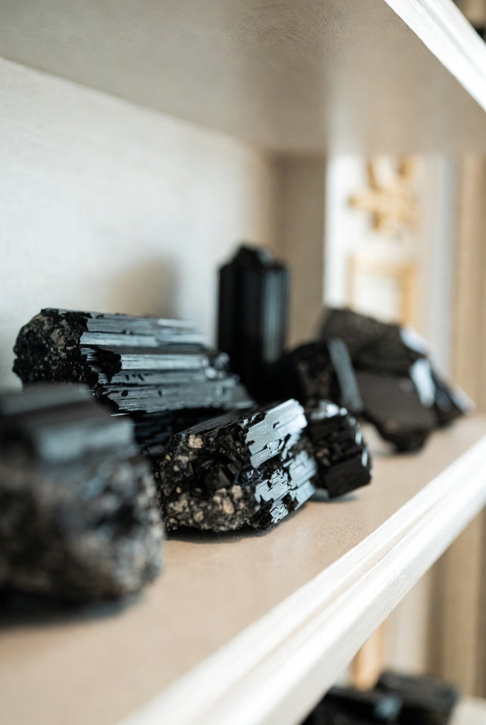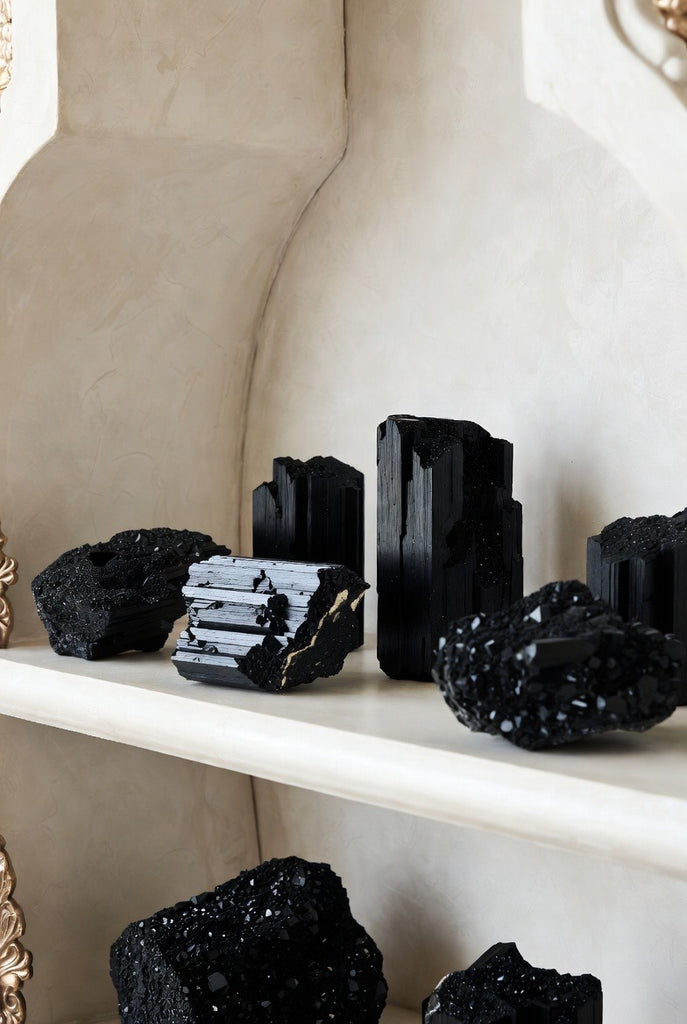 Introducing our Set of 3 Premium Black Tourmaline Chunks—where natural protection meets modern luxury. Hand-selected for their striking texture and rich, midnight tone, these exquisite mineral pieces bring depth, balance, and bold elegance to any interior.
