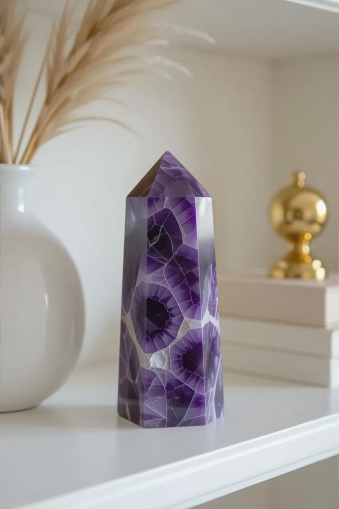 Infuse your space with calm, clarity, and a touch of shimmering luxury with our Polished Lepidolite Point — a graceful blend of soft violet hues and natural mica sparkle, designed to bring both visual beauty and emotional balance to your home.