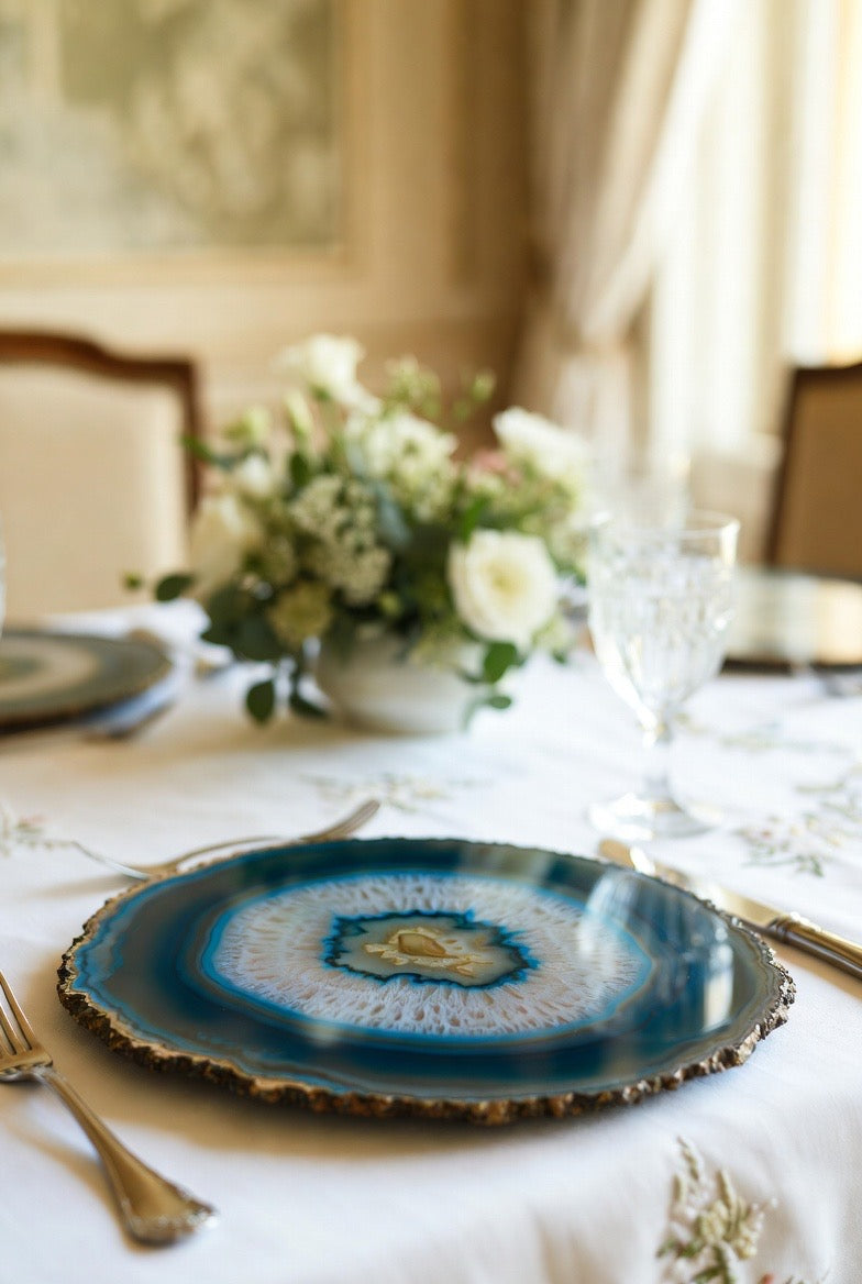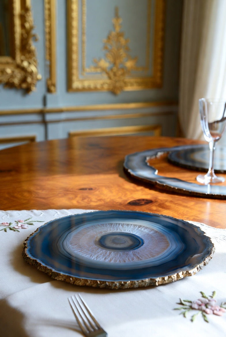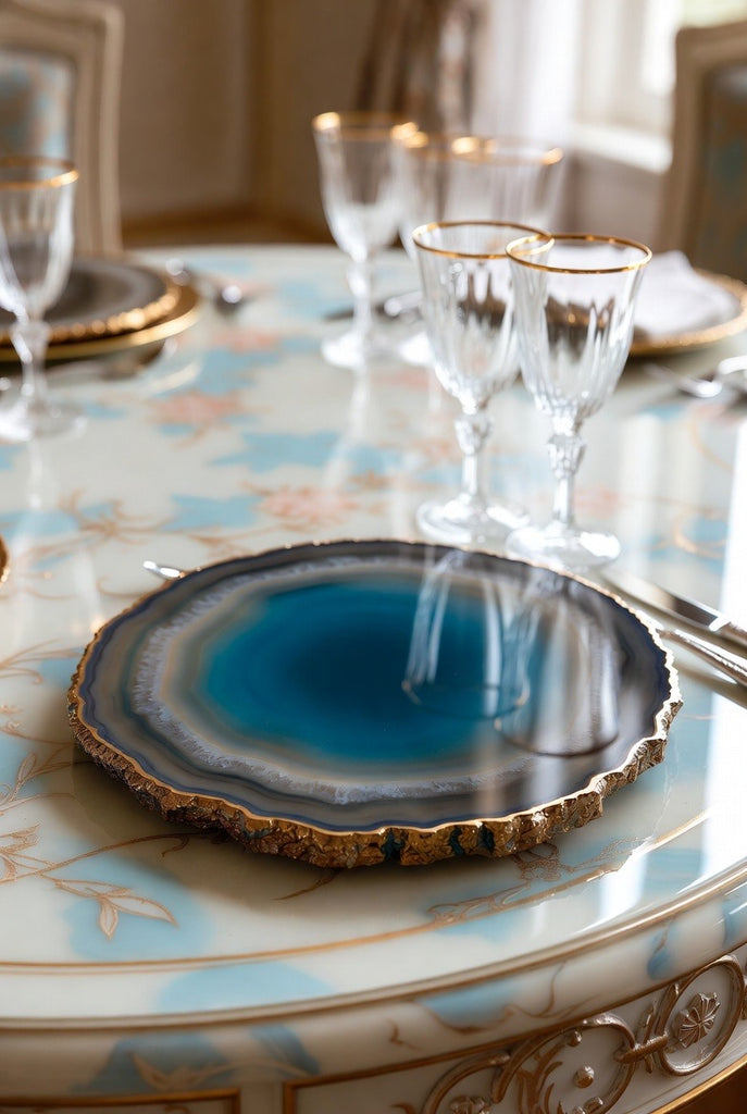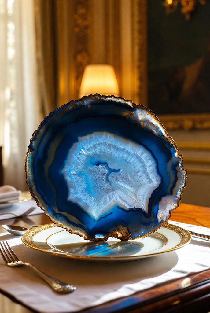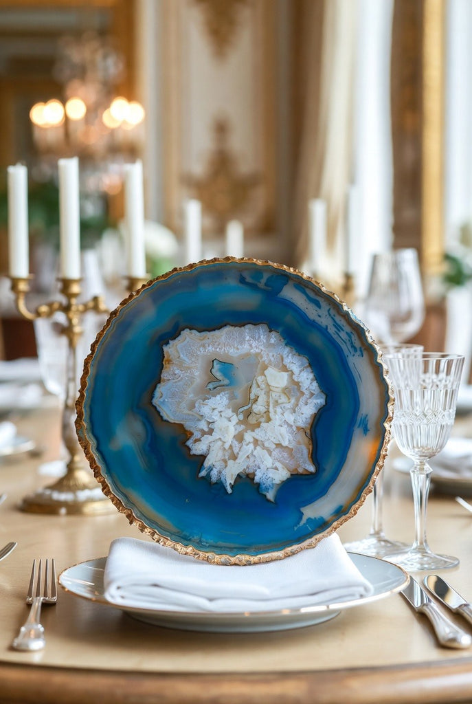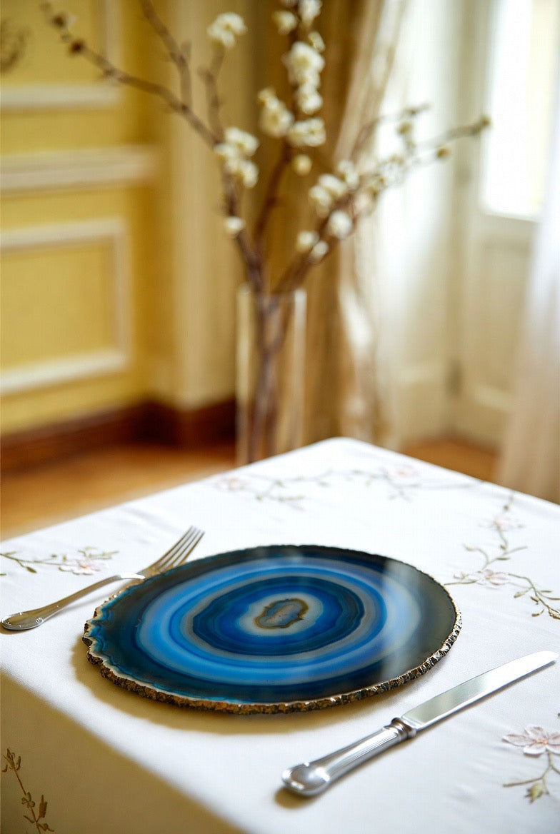 Elevate your table with a breathtaking piece carved from genuine agate. Rich crystal patterns, a glossy polished finish, and shimmering edges make this agate slice both a functional plate and a stunning decorative tray—all in one.