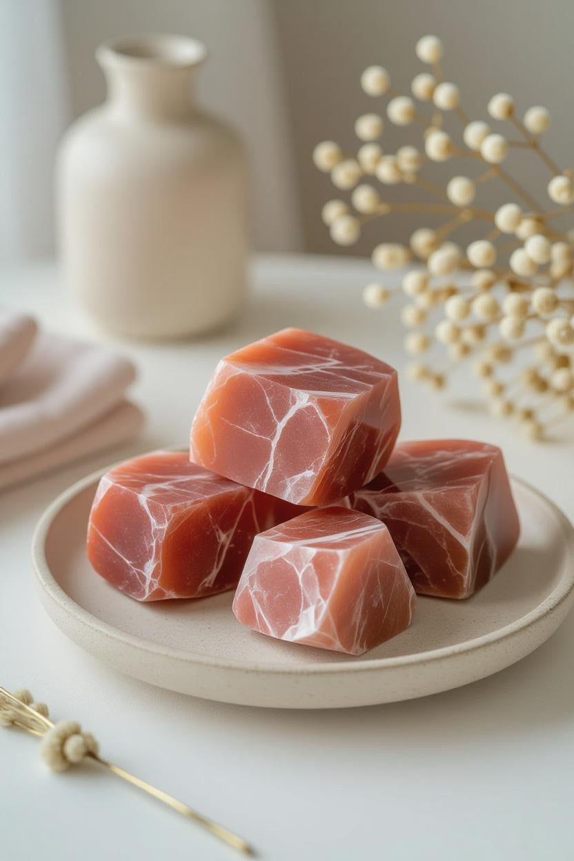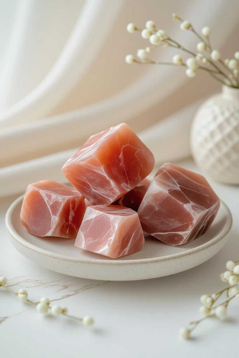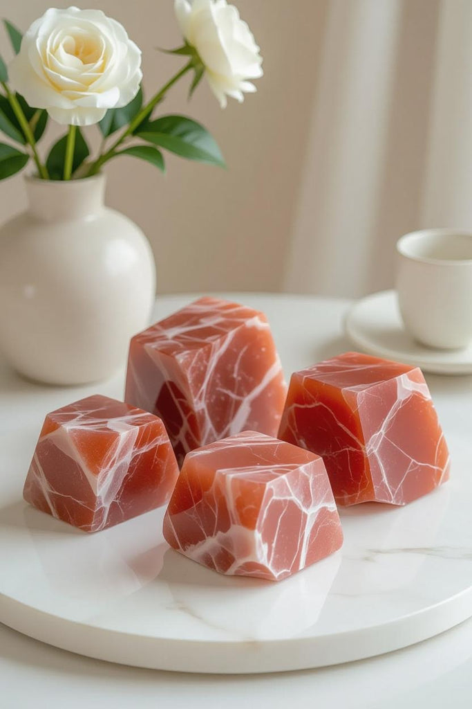The deep red hues evoke the richness of the season — think mulled wine, velvet ribbons, and fireside glow. Arranged together or styled individually, these stones bring grounding energy and understated luxury to mantels, tablescapes, bookshelves, and holiday vignettes.