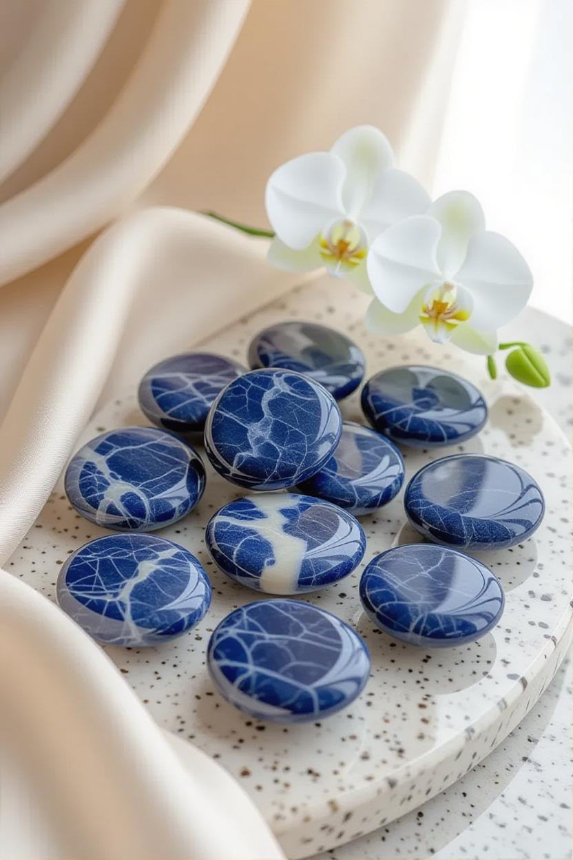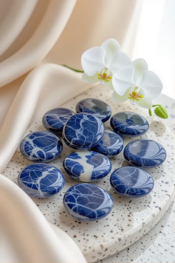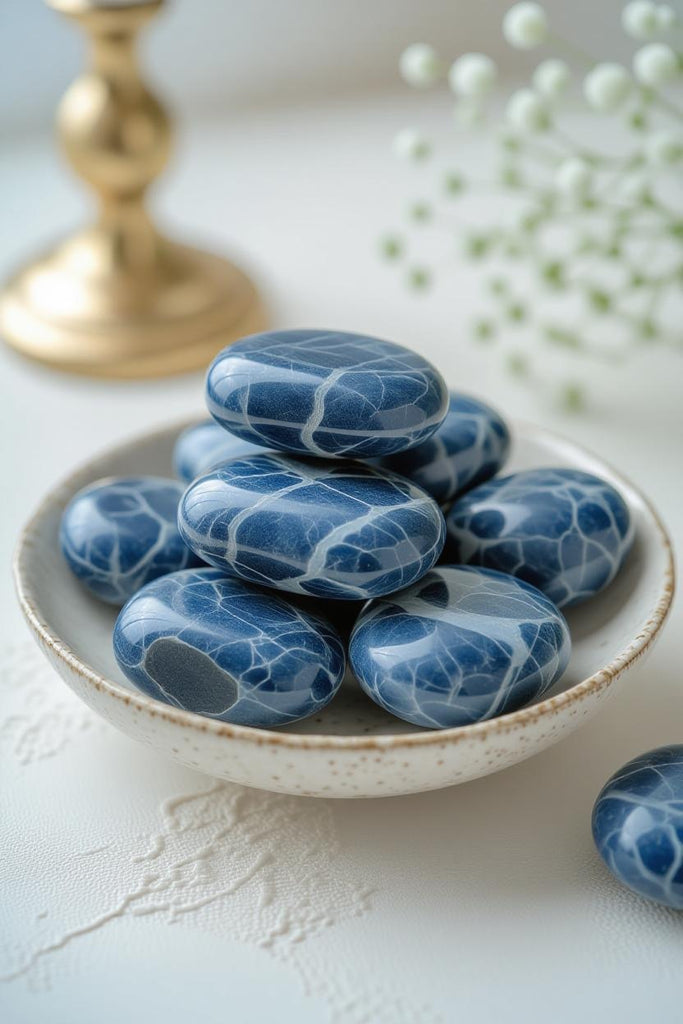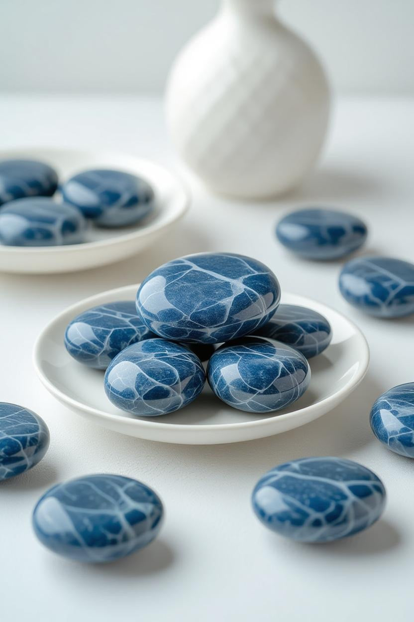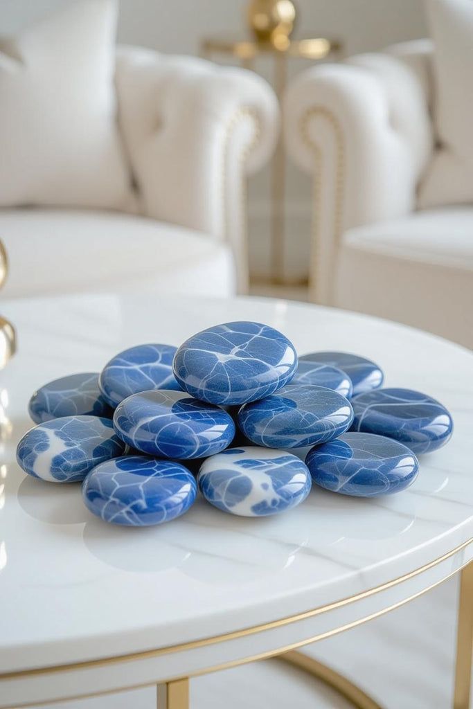 Introduce a sense of serene sophistication to your home with the deep, celestial tones of Tumbled Blue Sodalite — a gemstone celebrated for its rich indigo hues, delicate white marbling, and calming energy.