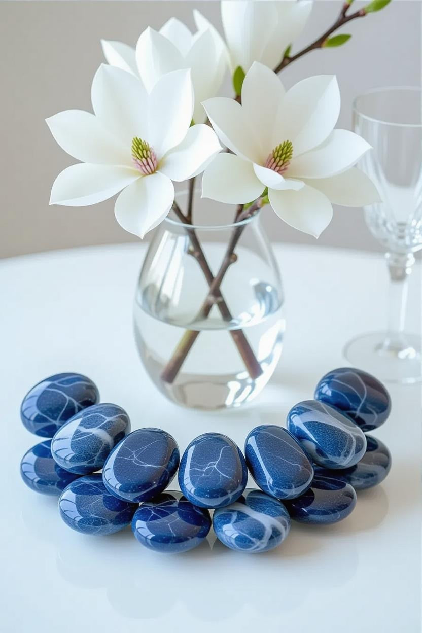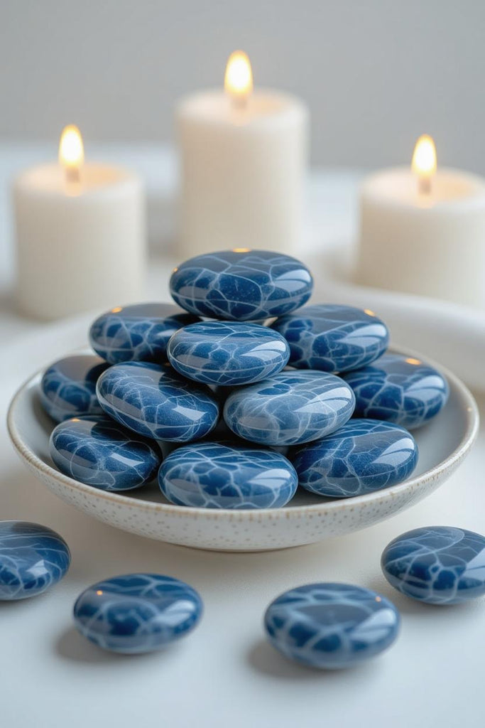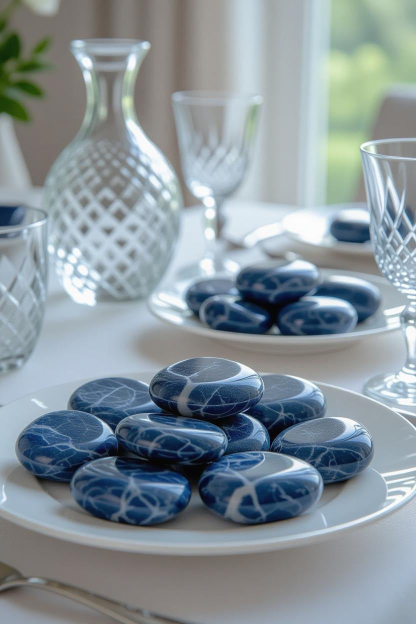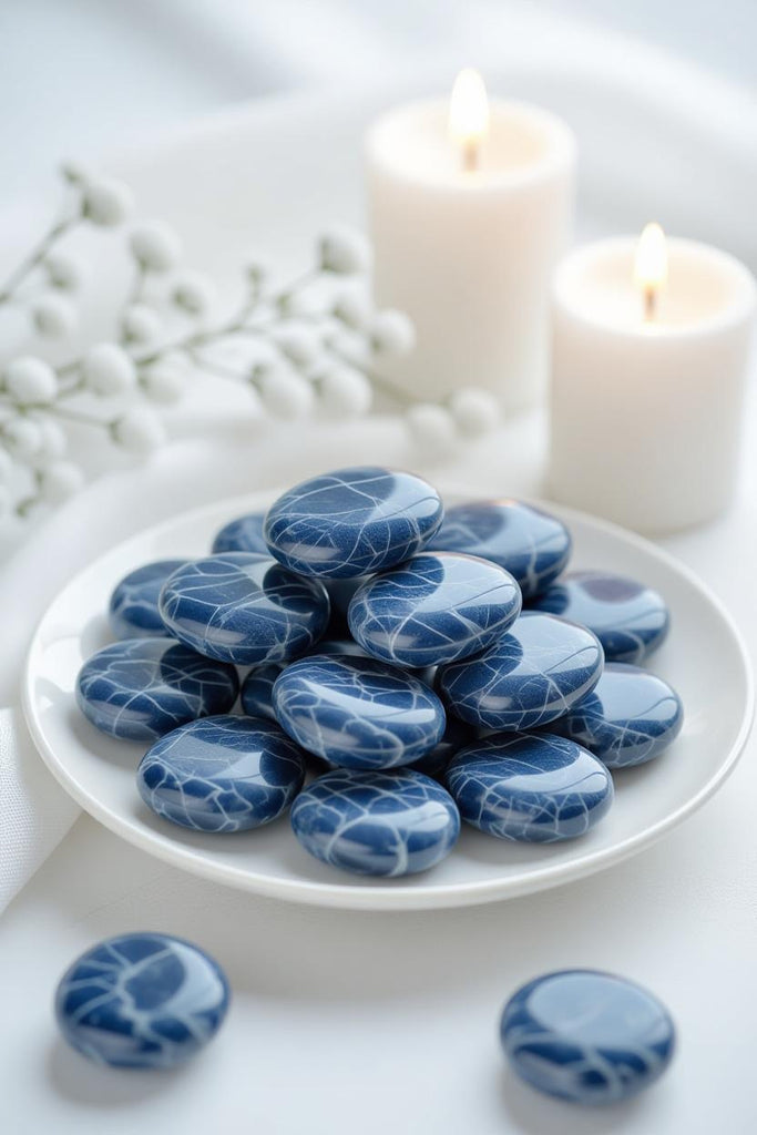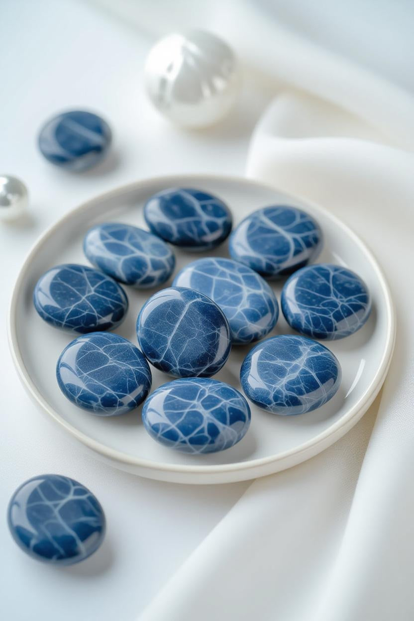 Introduce a sense of serene sophistication to your home with the deep, celestial tones of Tumbled Blue Sodalite — a gemstone celebrated for its rich indigo hues, delicate white marbling, and calming energy.