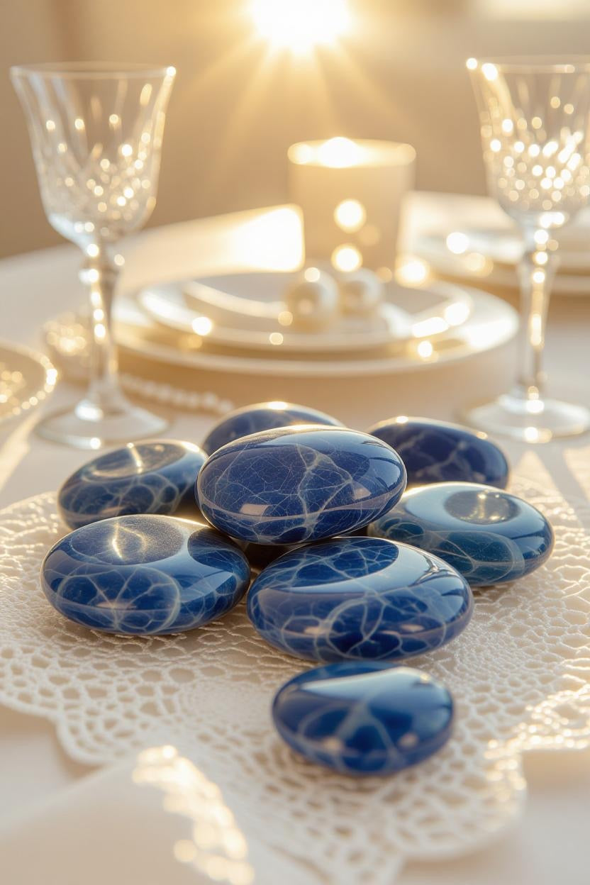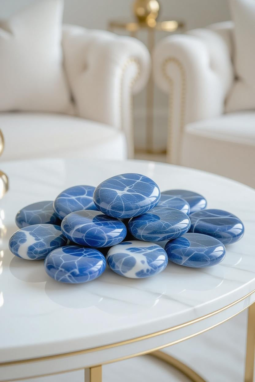 Each hand-polished stone is a miniature masterpiece, effortlessly blending natural elegance with contemporary design. Displayed in a crystal bowl, layered on a marble tray, or paired with minimalist ceramics, sodalite adds depth, texture, and tranquility to any elevated interior.