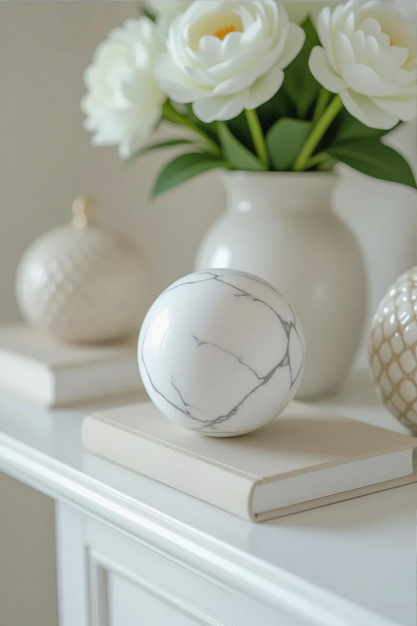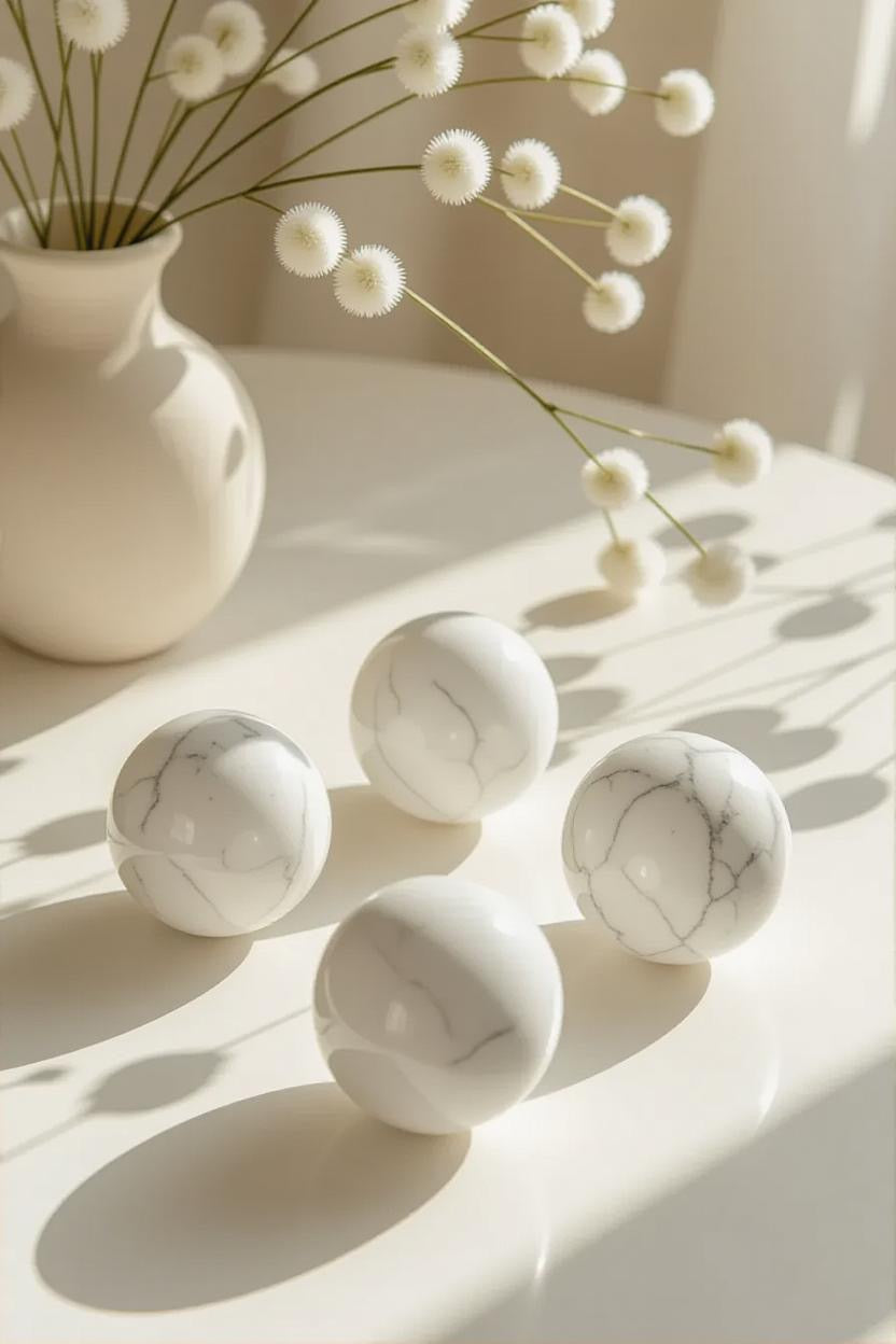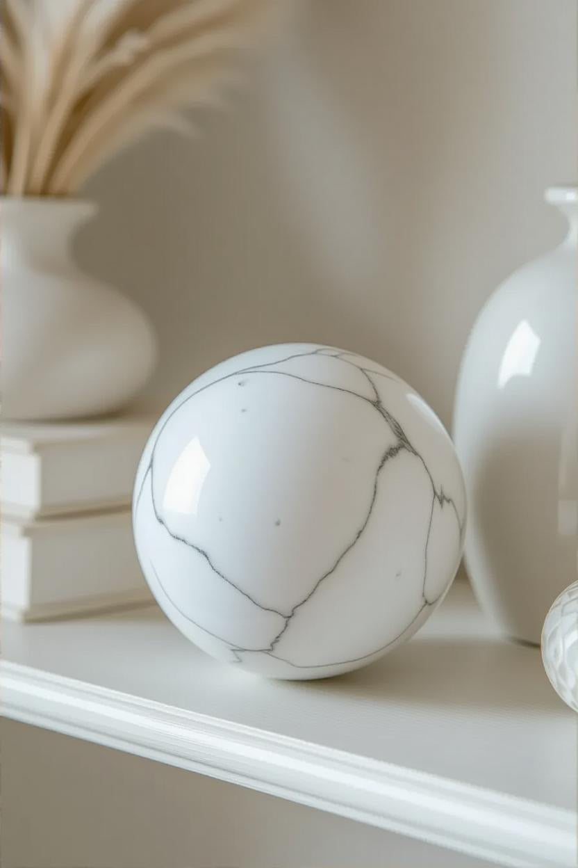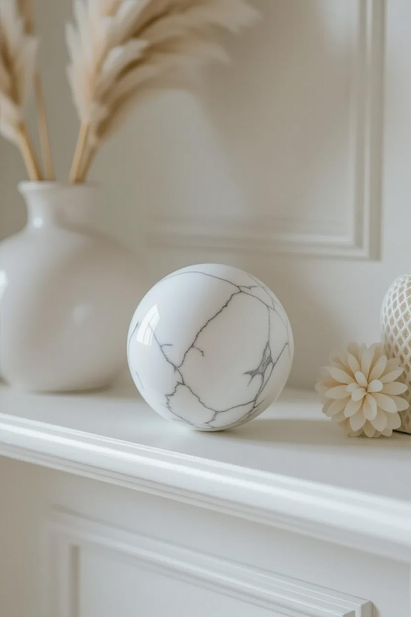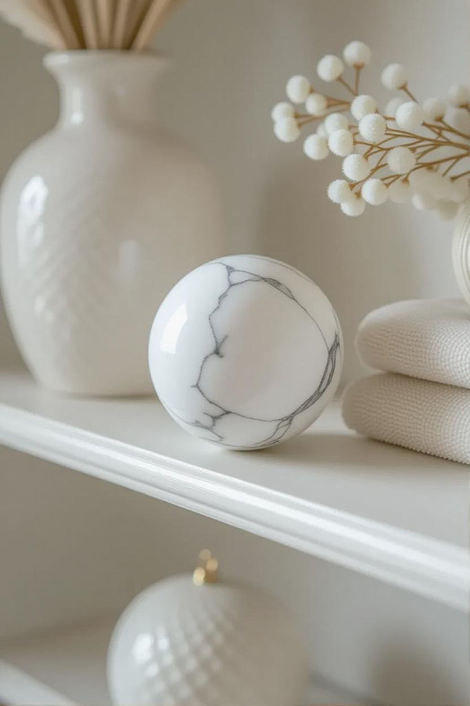 🤍 White Howlite Polished Sphere – Serenity in Stone 🤍