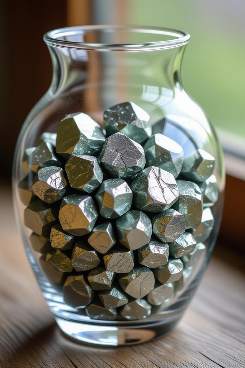 Looking for a unique gift that’s both beautiful and meaningful? Discover the charm of Pyrite “Fool’s Gold” presented in a sleek glass jar with a natural cork lid – a sparkling treasure perfect for any occasion!