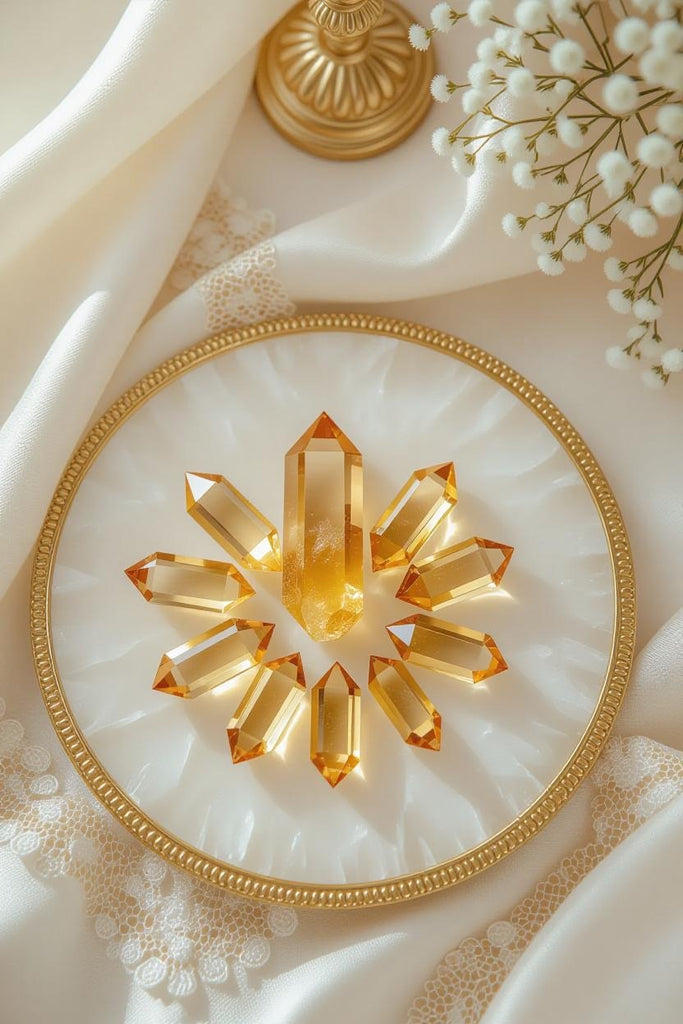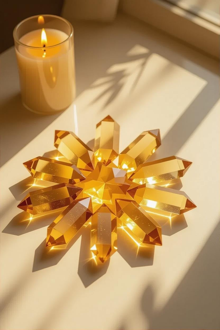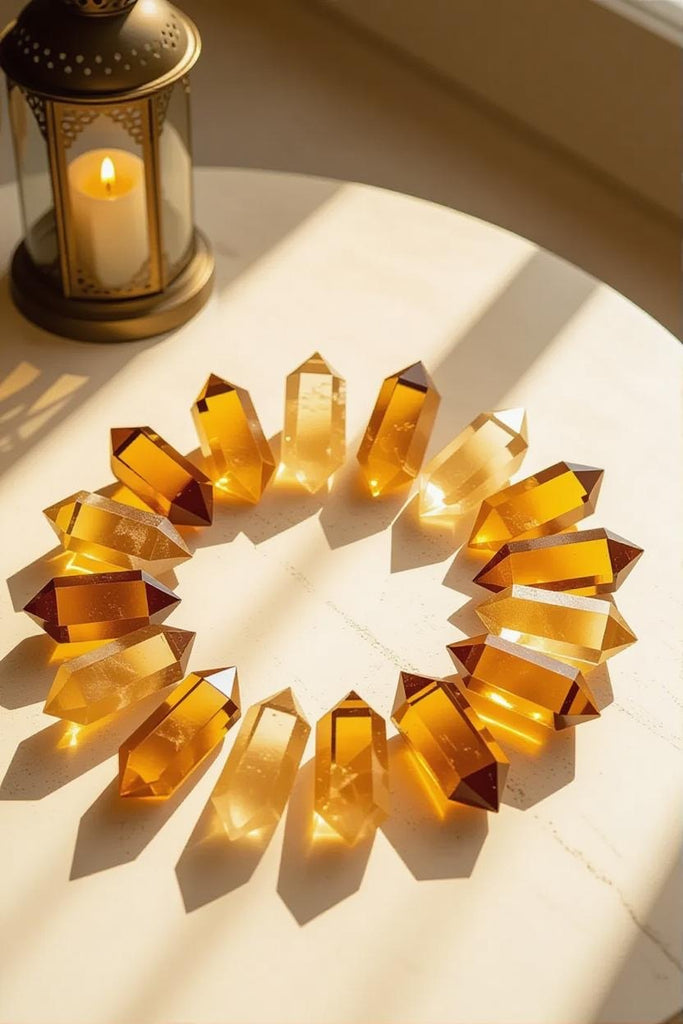 • Rich amber-to-gold tones that complement luxury palettes — think linen, leather, marble, and brass
