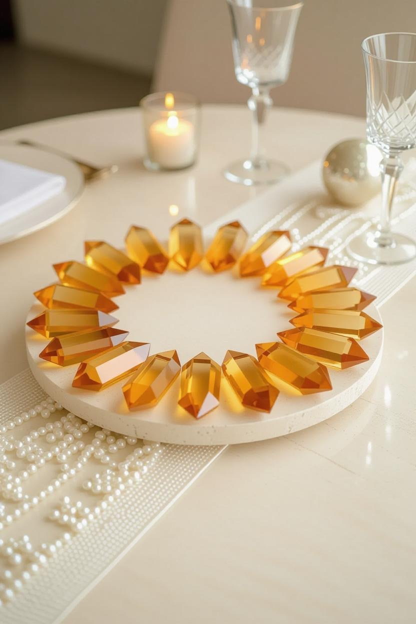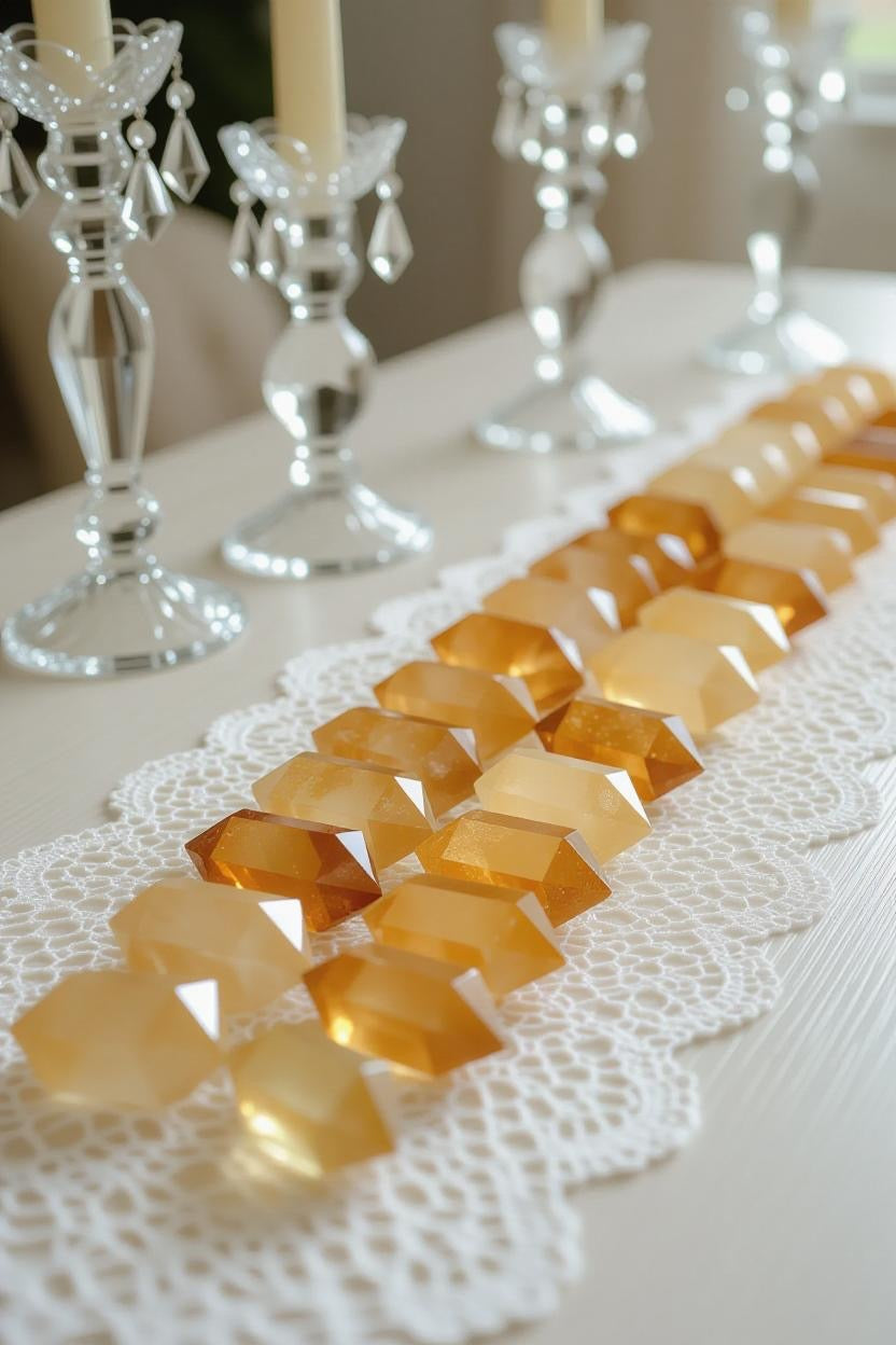 Why We Love This:  We love to arrange double terminated points into grid-like patterns on tables to create a unique table aesthetic decor statement!