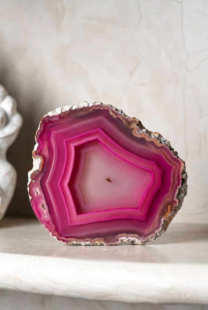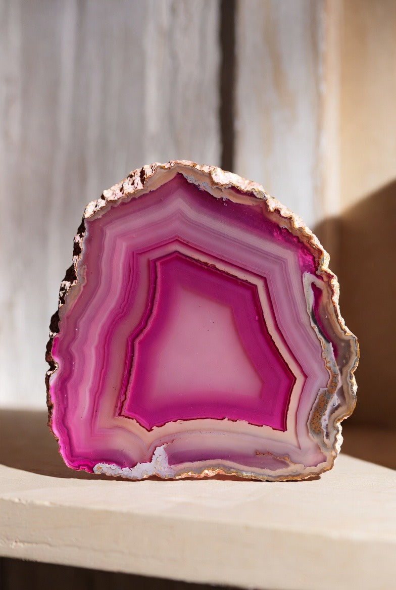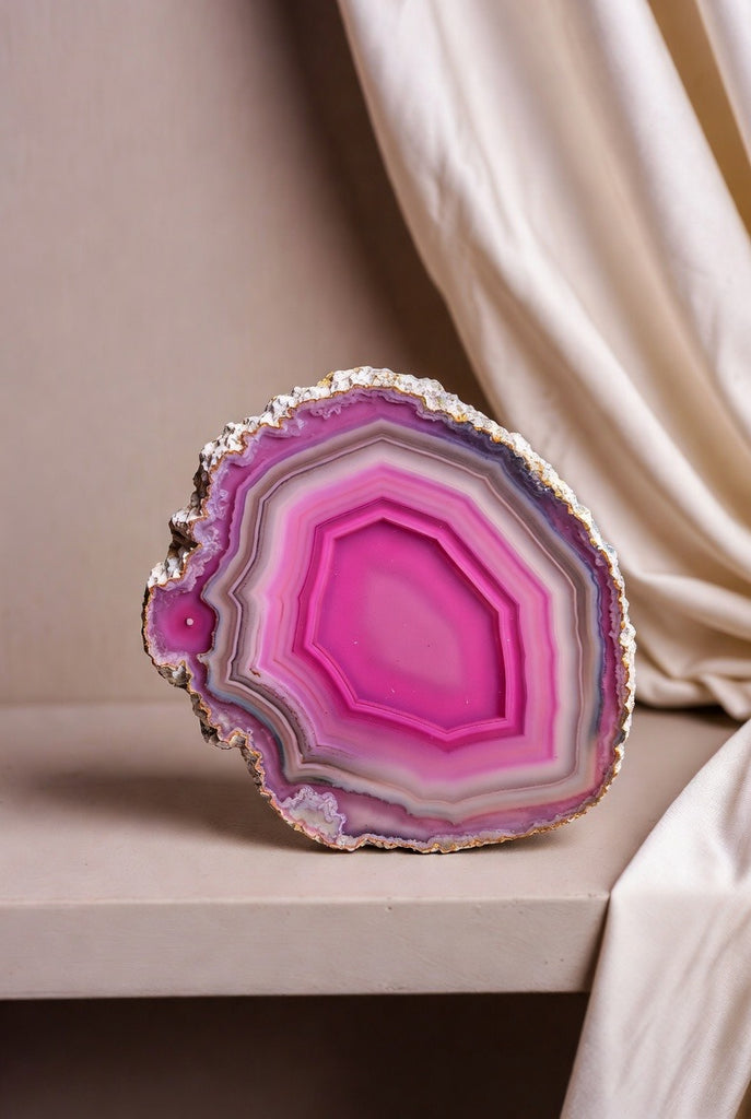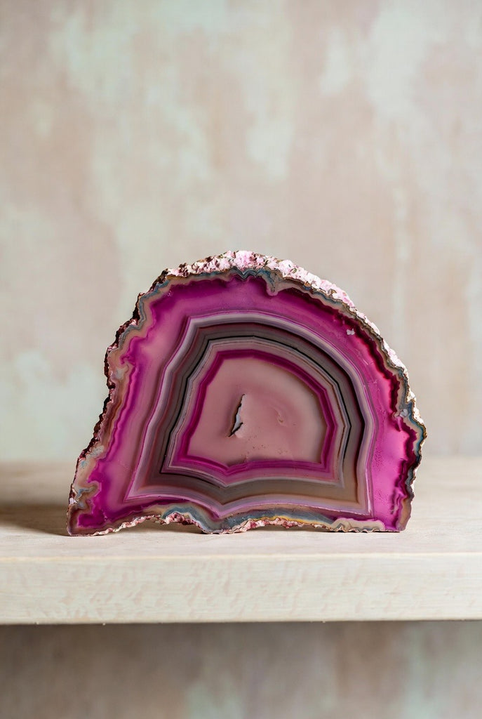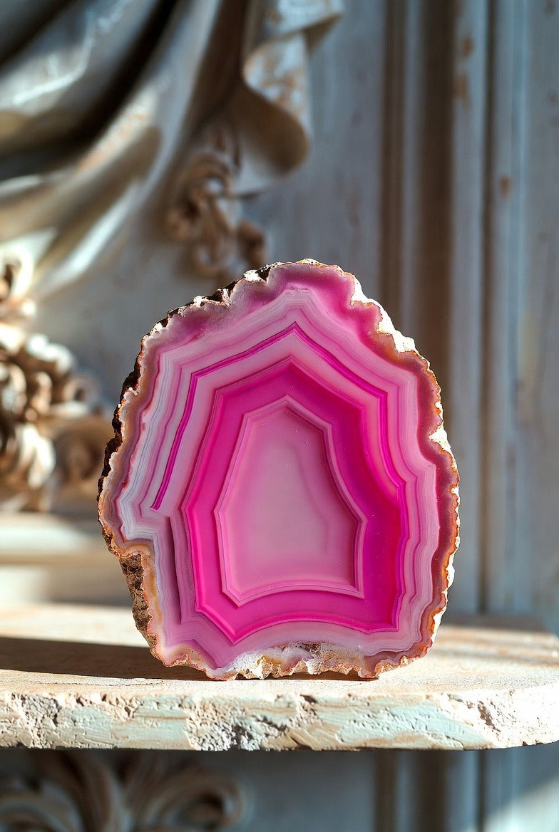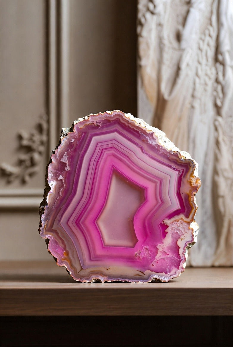 Bring natural elegance and eye-catching color into any room with these polished agate slabs—each one standing beautifully on its own flat base for effortless display.
