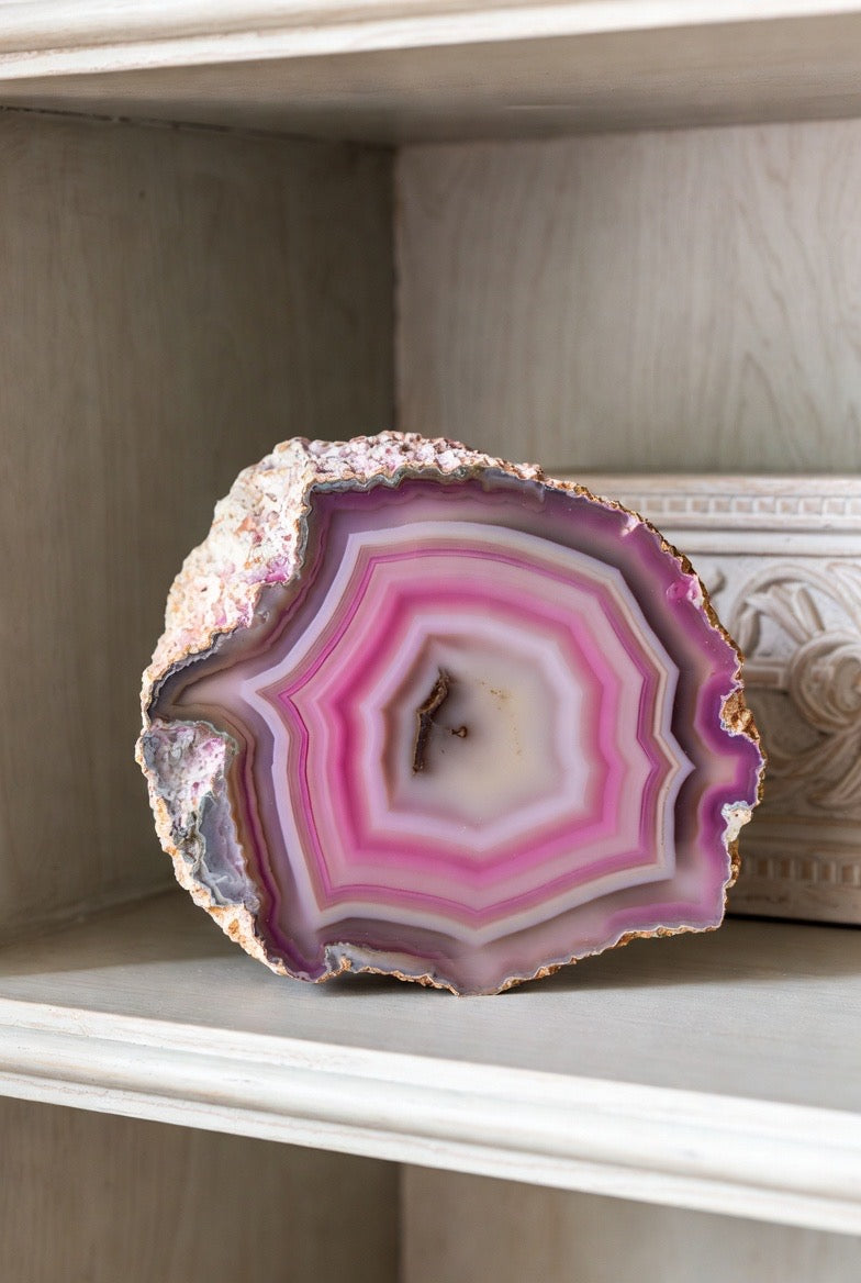 This listing is for 1 (one) PINK Thick Slab Agate.  I offer this in 3 sizes.   Please choose the size that calls to you from the drop-down menu.   Yours will arrive lovingly parceled and ready for enjoyment!