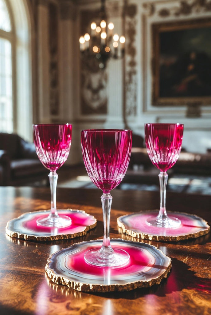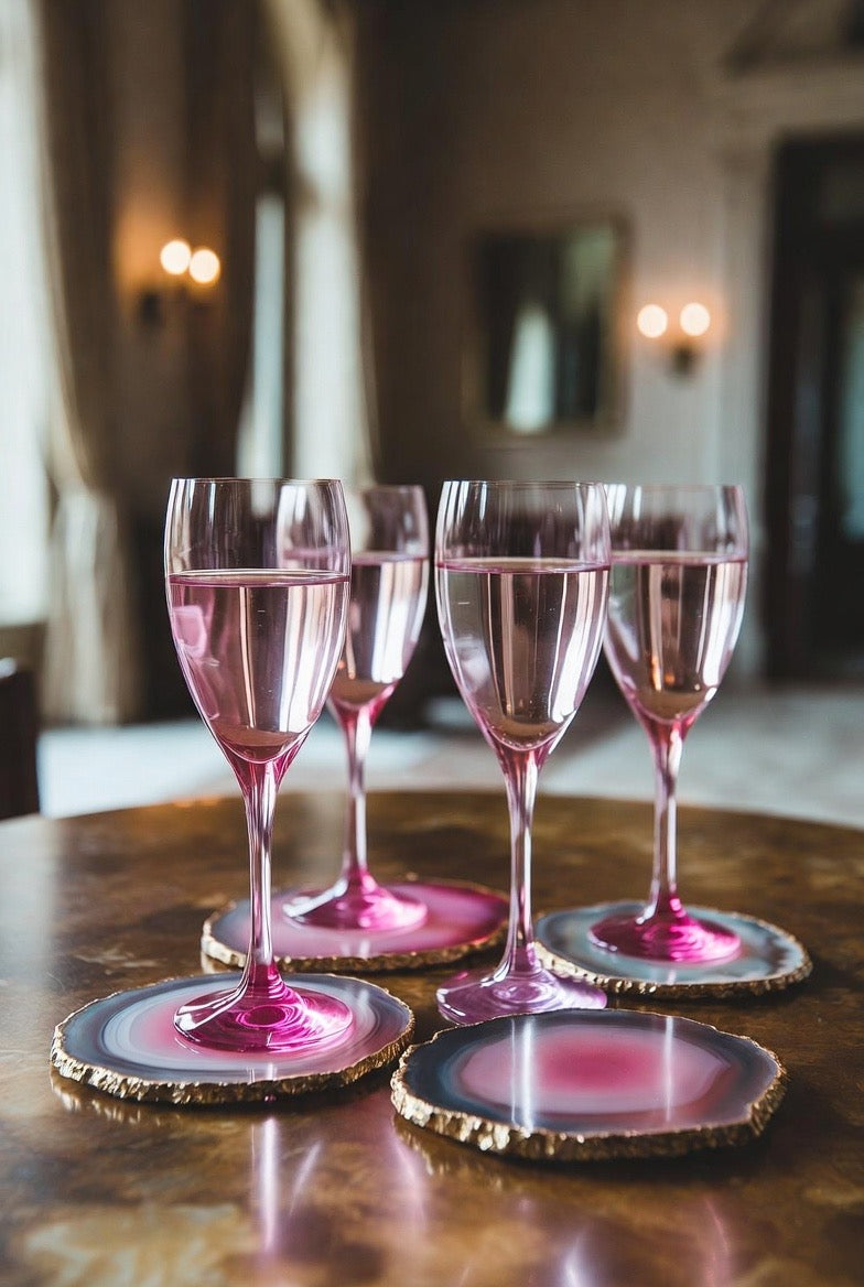 Pair them with your favorite wine glasses or sparkling holiday flutes—the shimmer of agate effortlessly enhances the beauty of your stemware, creating a refined and festive atmosphere.