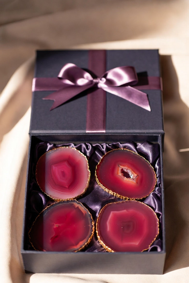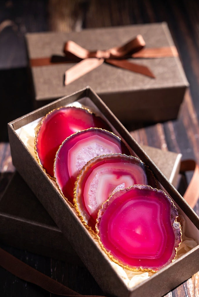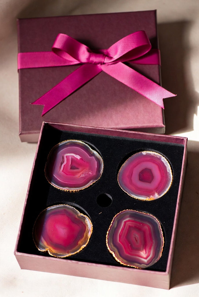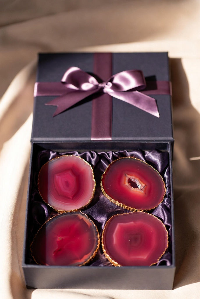 Beautifully packaged and ready to give, these agate coasters make a thoughtful, luxurious present for hosts, friends, family, or anyone who appreciates style with a natural twist.
