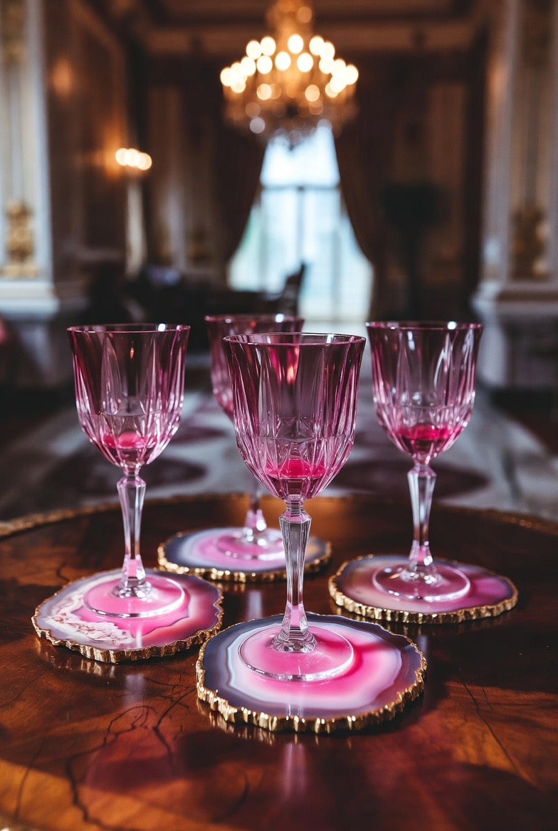 PINK AGATE SLICE COASTER SET