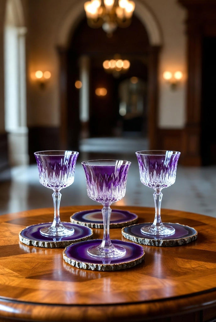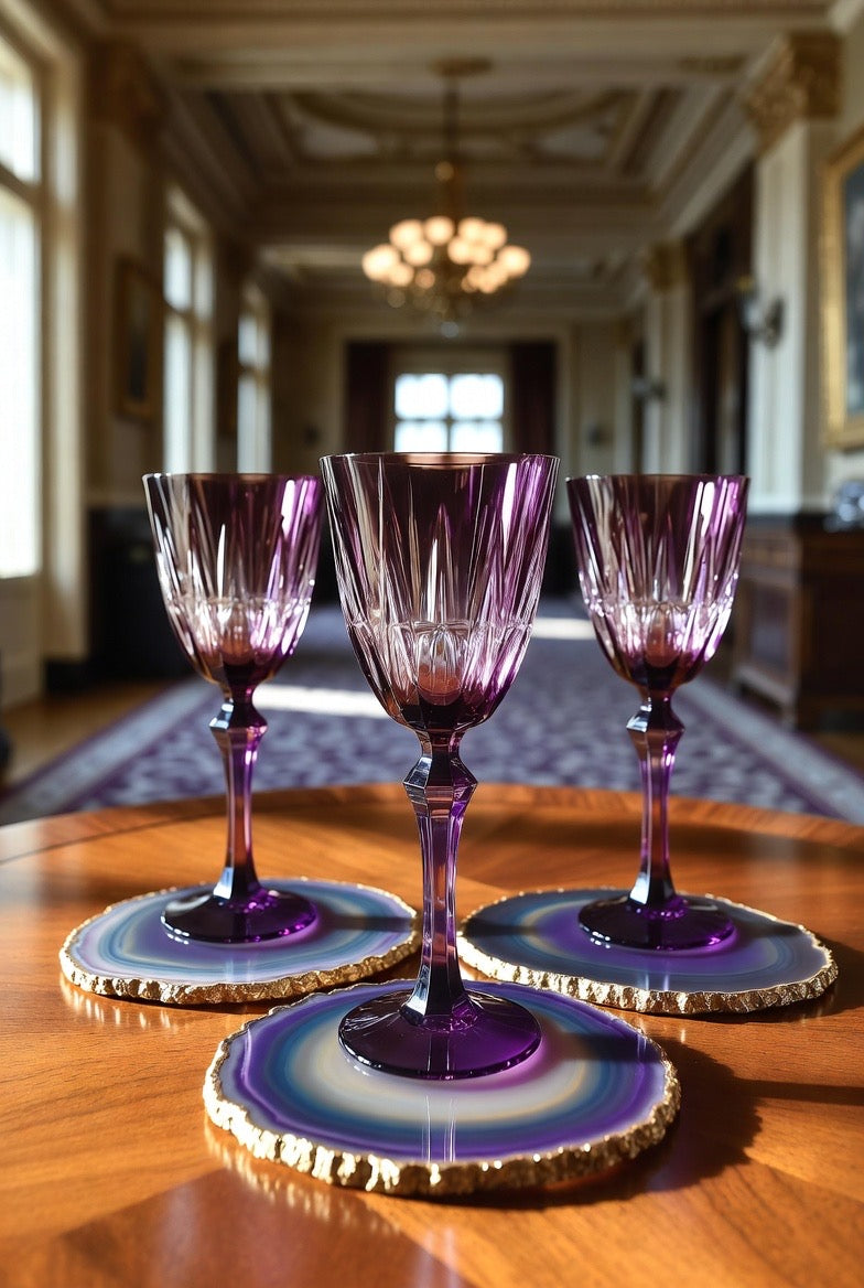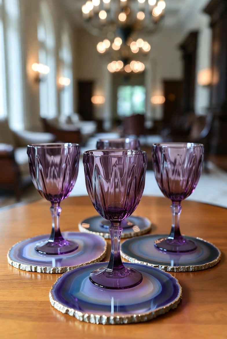 Pair them with your favorite wine glasses or sparkling holiday flutes—the shimmer of agate effortlessly enhances the beauty of your stemware, creating a refined and festive atmosphere.