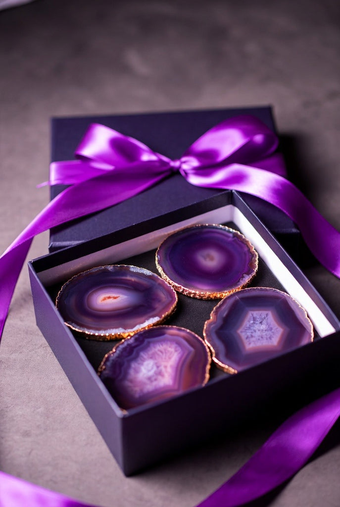 Beautifully packaged and ready to give, these agate coasters make a thoughtful, luxurious present for hosts, friends, family, or anyone who appreciates style with a natural twist.