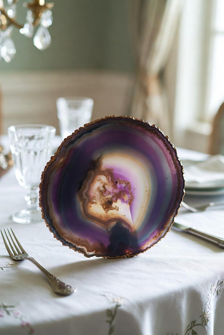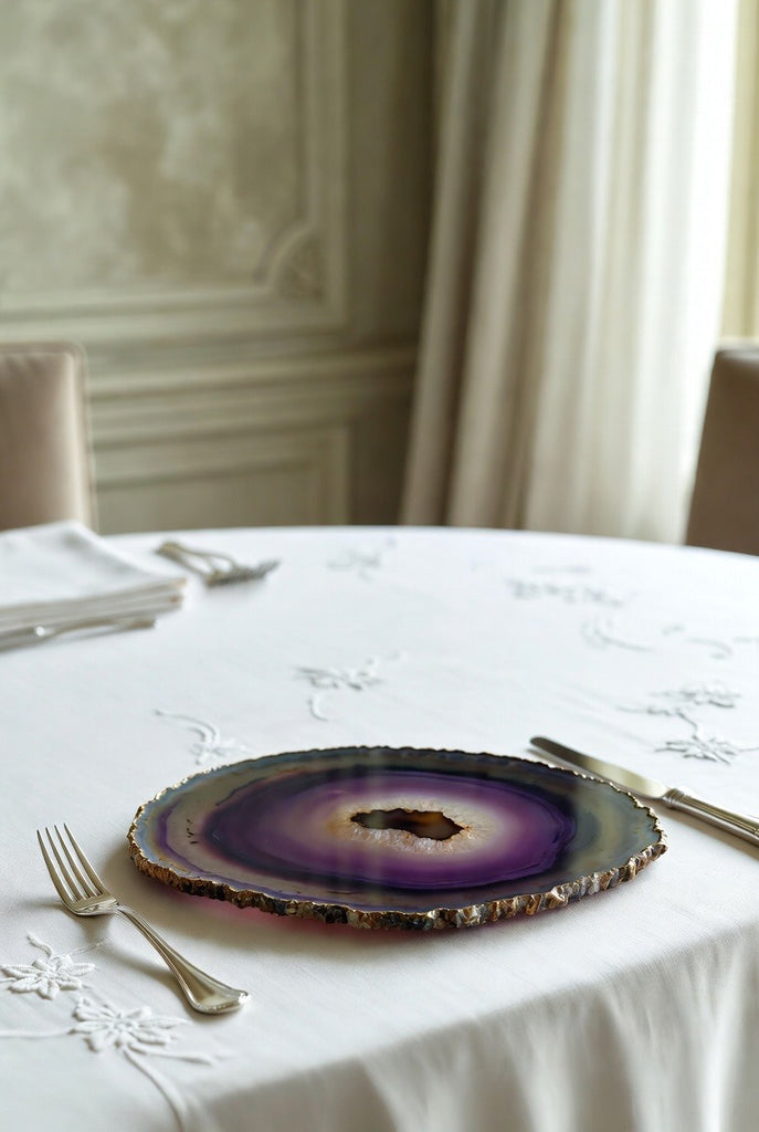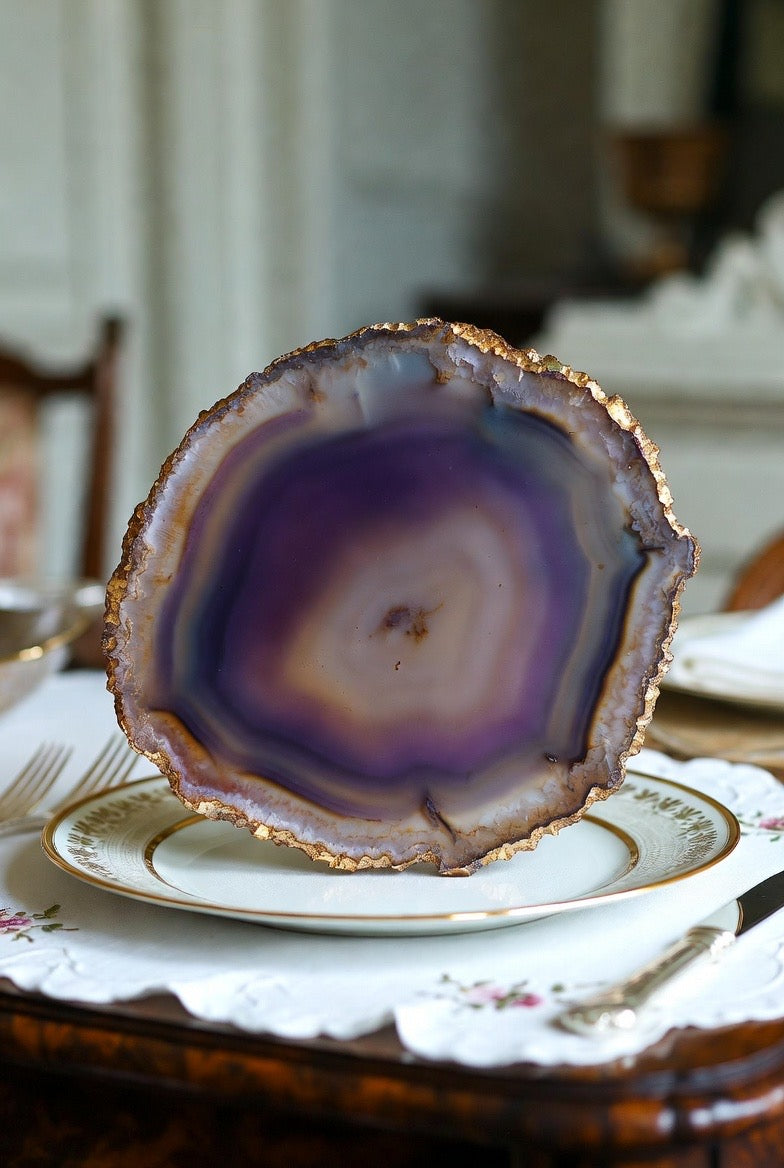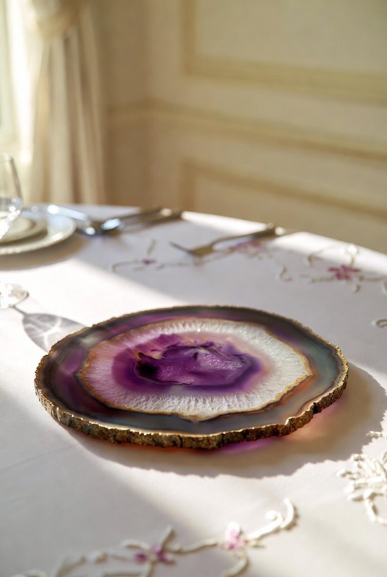 This listing is for 1 (one) PURPLE Agate Slice Dinner Plate. Yours will arrive lovingly parceled and ready for enjoyment!