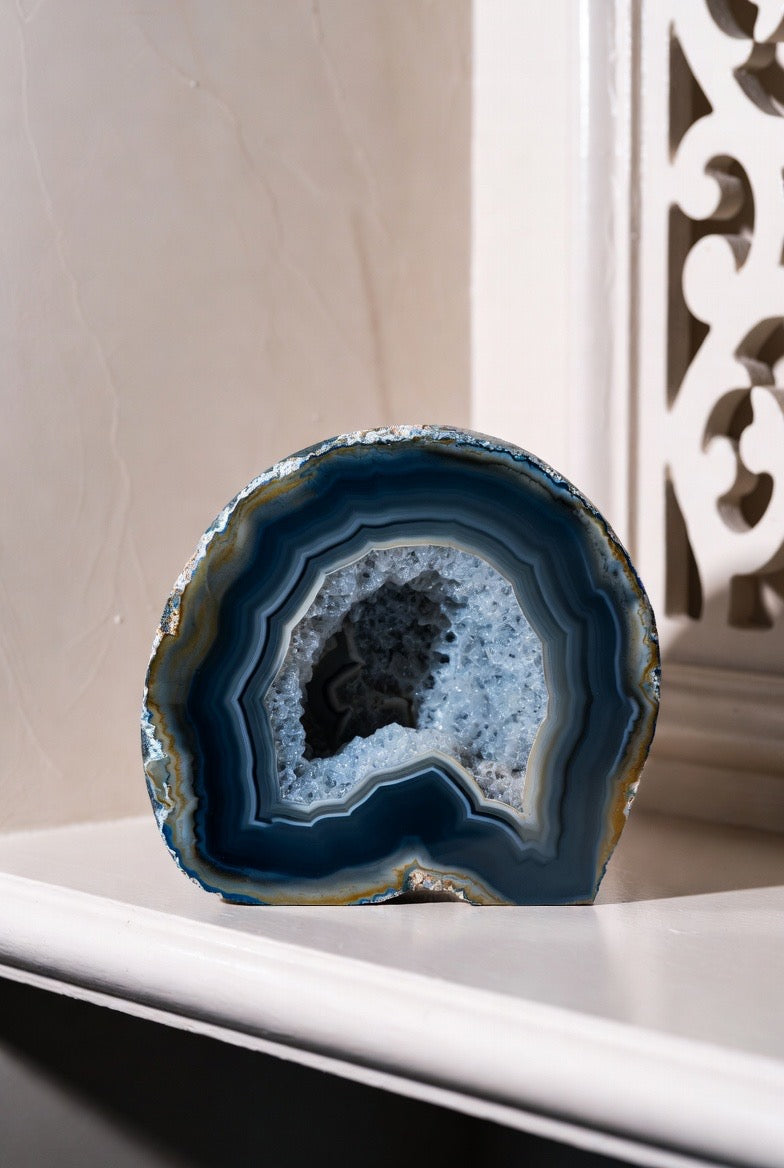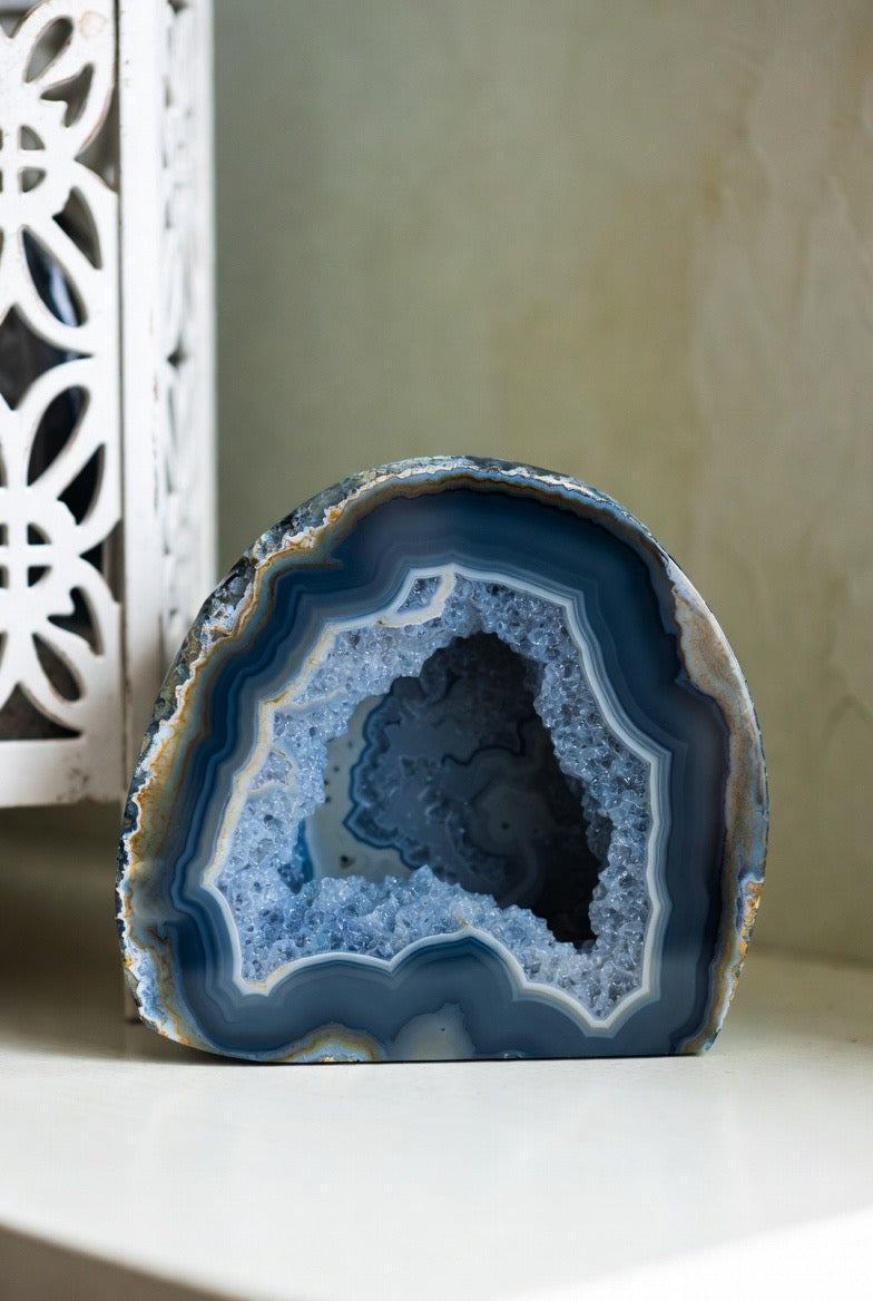 This listing is for one (1) BLUE Agate Geode with Cut a Base, (about 3-5” in size). Yours will arrive lovingly parceled and ready for enjoyment!