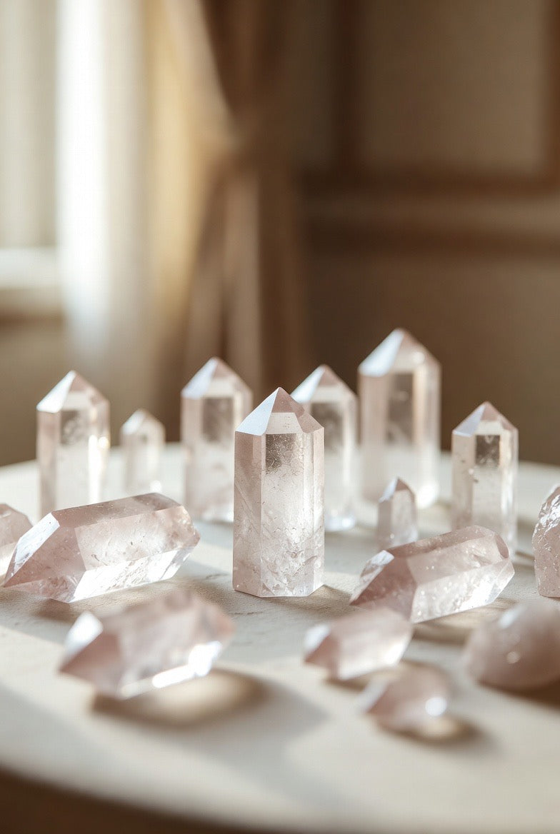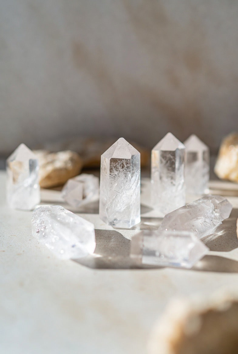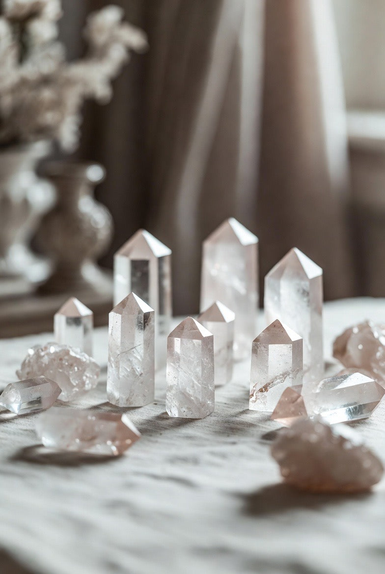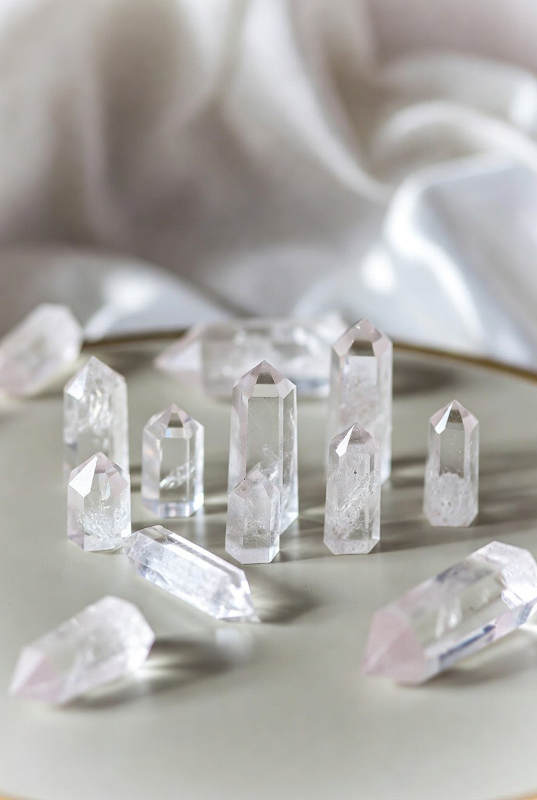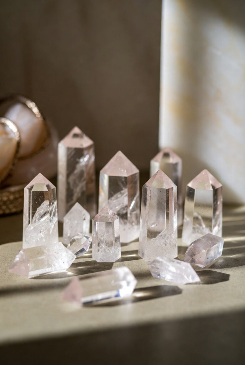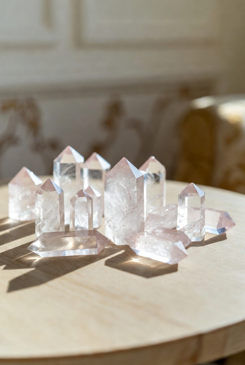 No two crystals are alike—each point reflects the natural beauty and strength of the earth. Whether you choose a single statement piece or a bag to create your own display, these clear quartz points add timeless, natural elegance wherever they’re placed.