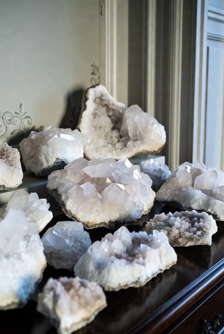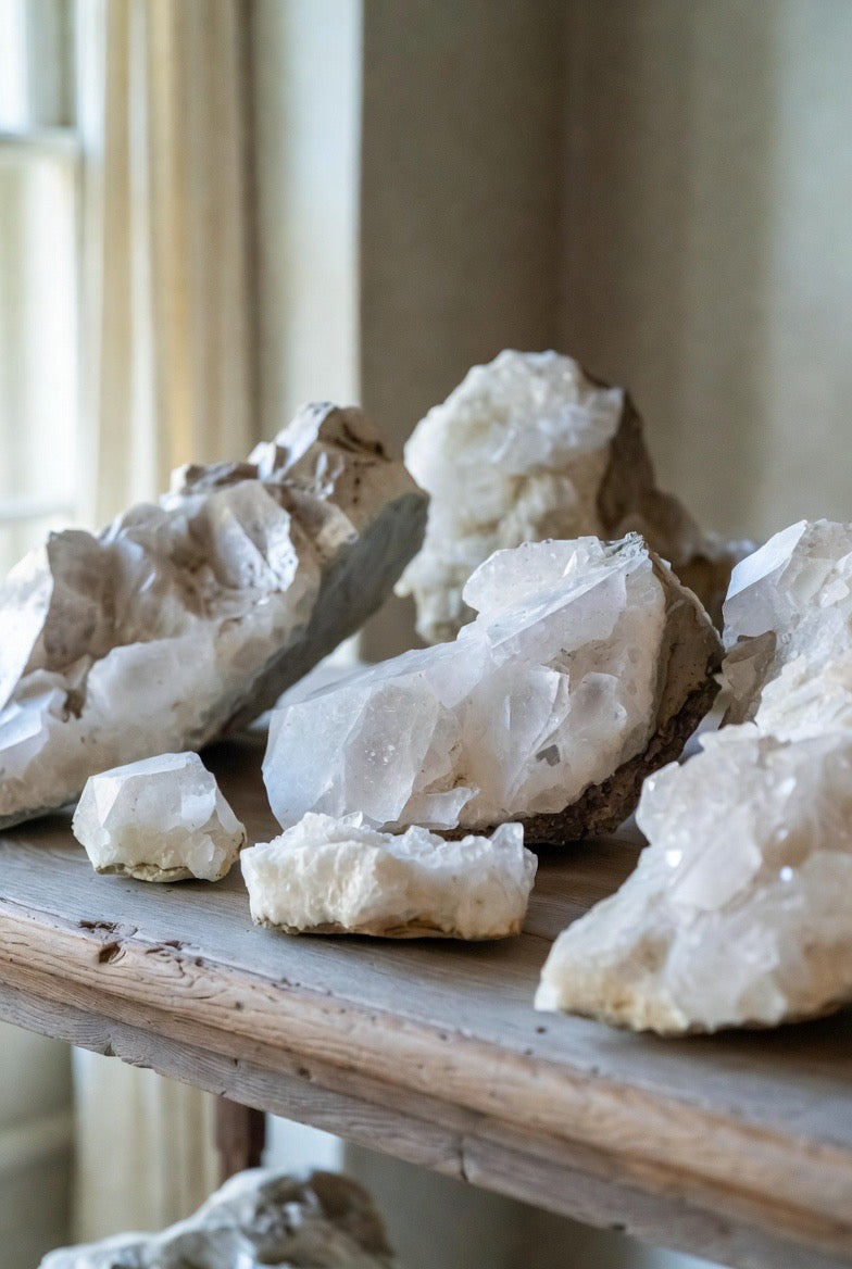 Elevate your space with a Raw Natural Clear White Quartz Cluster, a beautiful expression of nature’s elegance designed to complement refined home décor. With its crisp clarity and organic crystal points, this piece brings light, texture, and effortless sophistication to any room.