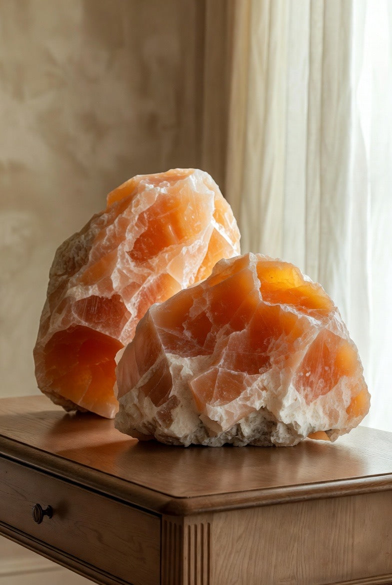 We love these raw orange calcite chunks because they bring vibrant energy and natural beauty into any space. The unique, organic shape makes every piece one of a kind, adding texture and color to décor, shelves, or planters. Bright, uplifting, and effortlessly charming, it’s a simple way to infuse warmth and personality into your home.