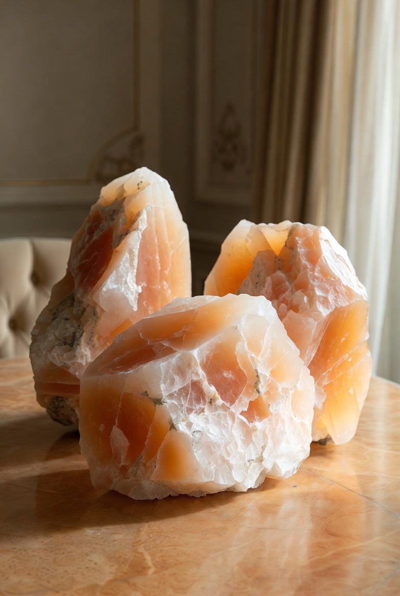 Bring warmth and natural beauty to your home with this raw, natural orange calcite chunk. Each piece is uniquely formed by nature, showcasing bright orange hues and organic textures that make every chunk one of a kind.