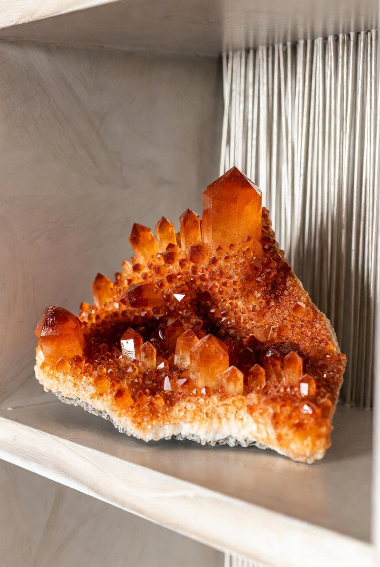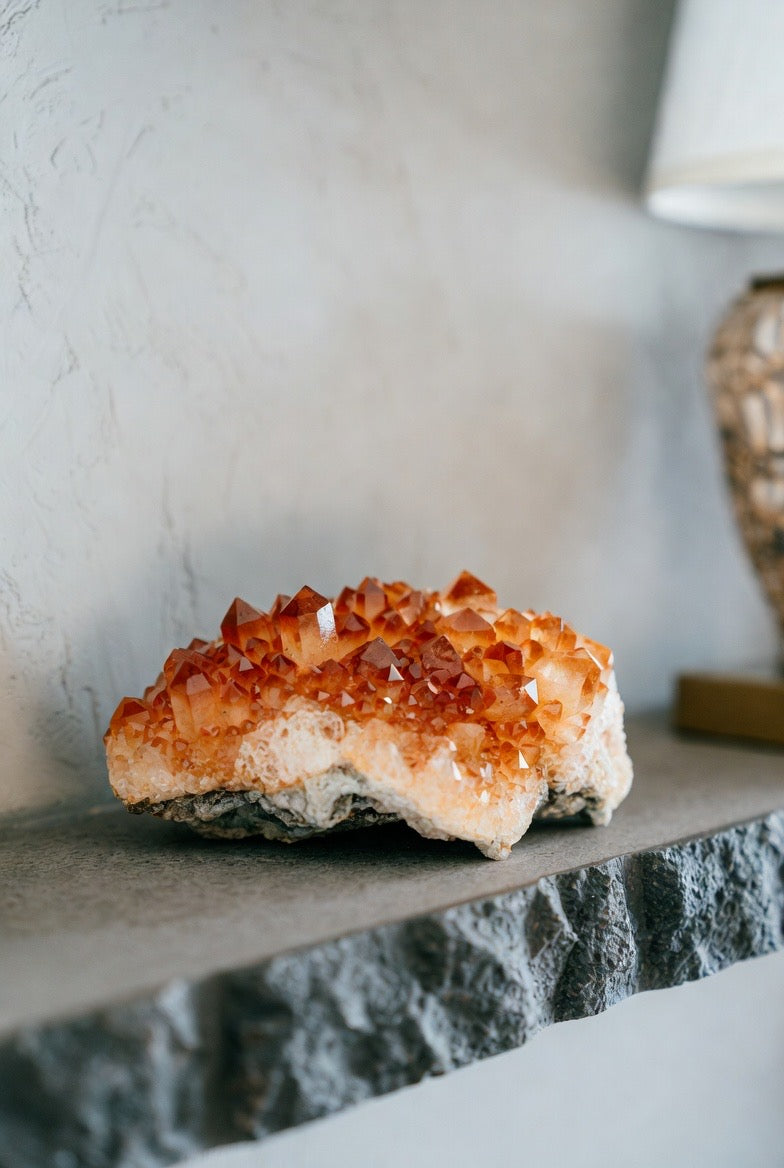 Bring a warm glow of sophistication into your home with our Tangerine Quartz Cluster 🍊💎—a statement piece designed for luxury interiors.