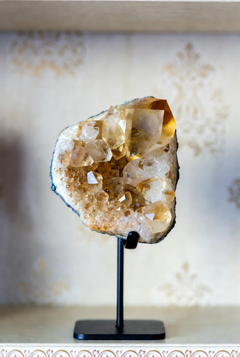 Citrine Cluster on Black Metal Stand – Shine Bright, Radiate Confidence