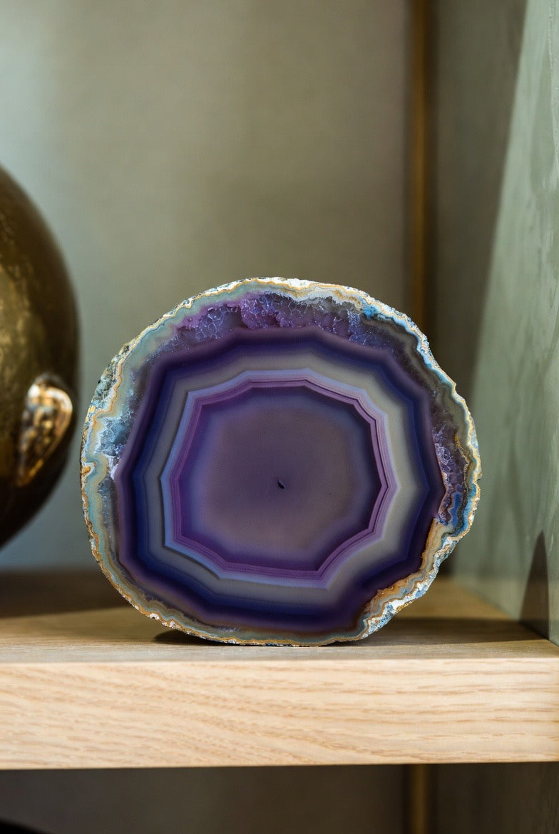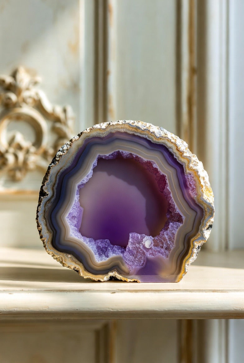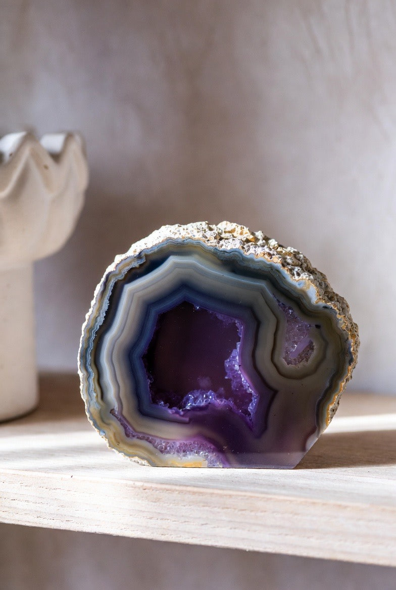 This listing is for one (1) PURPLE Agate Geode with Cut a Base, (about 3-5” in size). Yours will arrive lovingly parceled and ready for enjoyment!