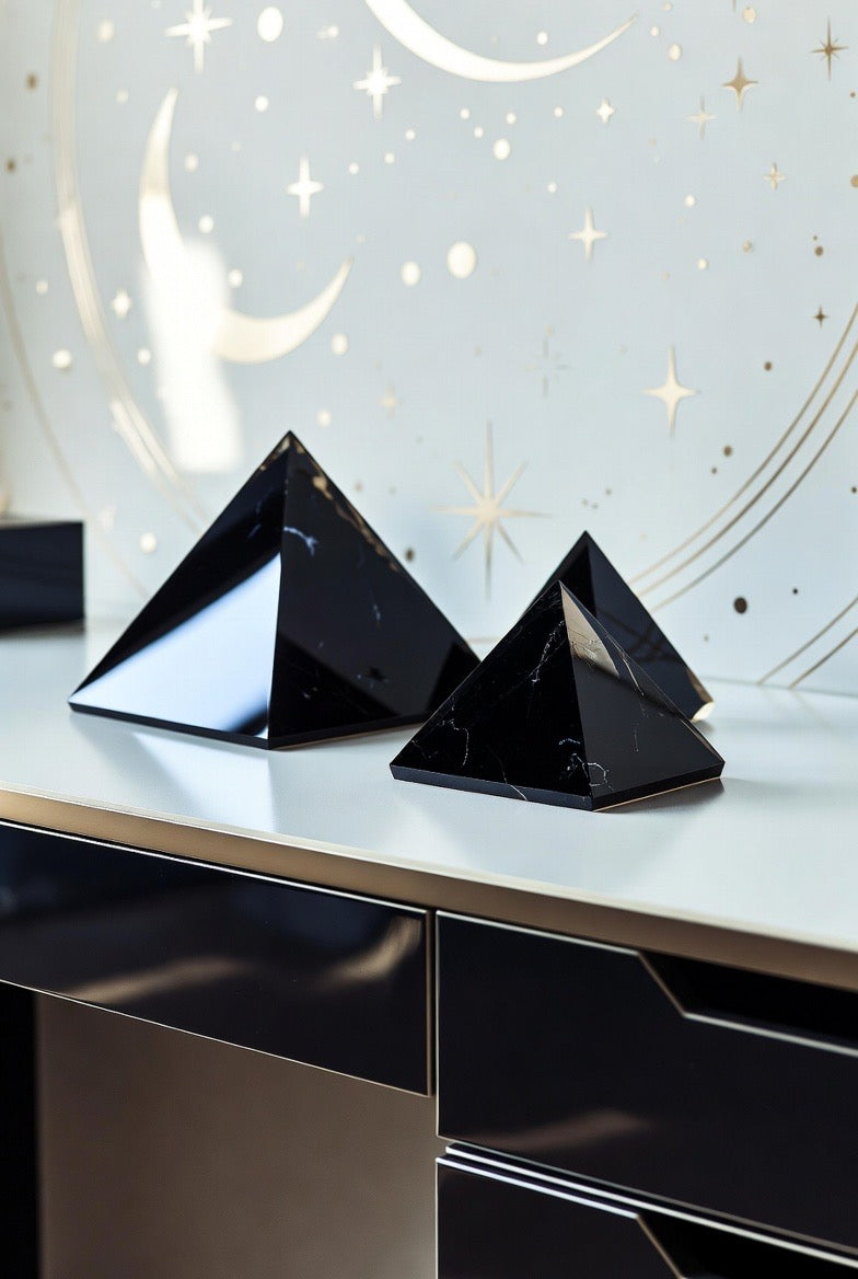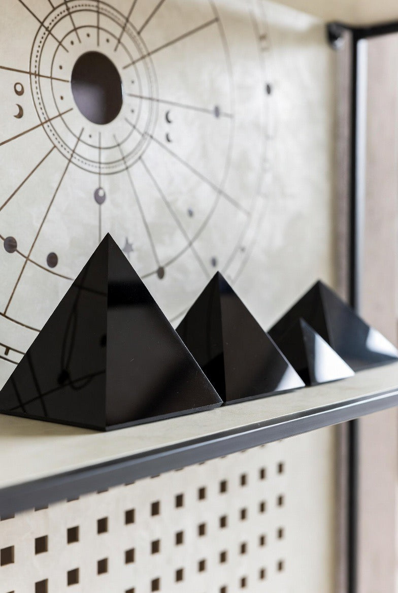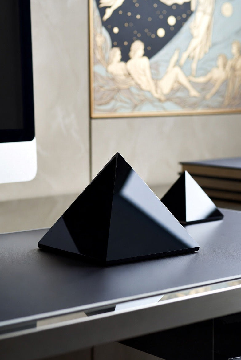 Crafted from premium black obsidian and meticulously polished to a mirror-like finish, this pyramid serves as a bold focal point in any luxury interior. Known for its protective and grounding properties, it not only enhances your space with deep, captivating beauty but also offers a layer of energetic balance and clarity.