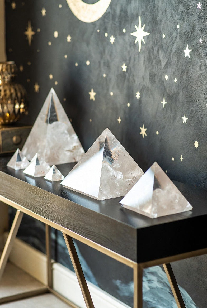 Known as the “Master Healer,” clear quartz is believed to amplify clarity, intention, and tranquility — making this pyramid both a visual and spiritual centerpiece.