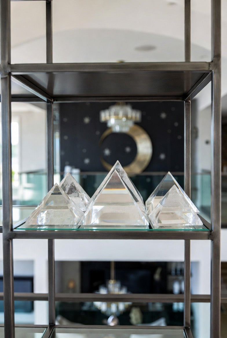 A symbol of balance, focus, and refined taste, our Clear Quartz Pyramid is a striking fusion of natural crystal and architectural elegance. Hand-carved to geometric perfection, this luminous accent adds depth and energy to any modern interior.