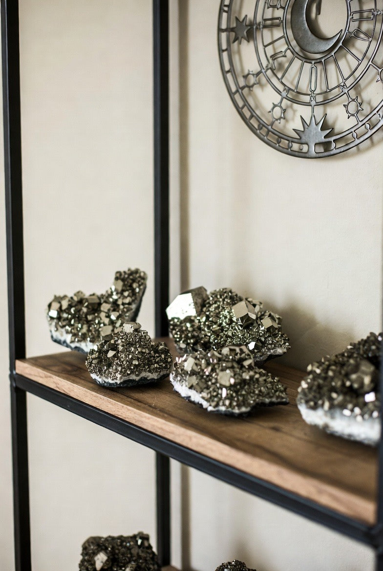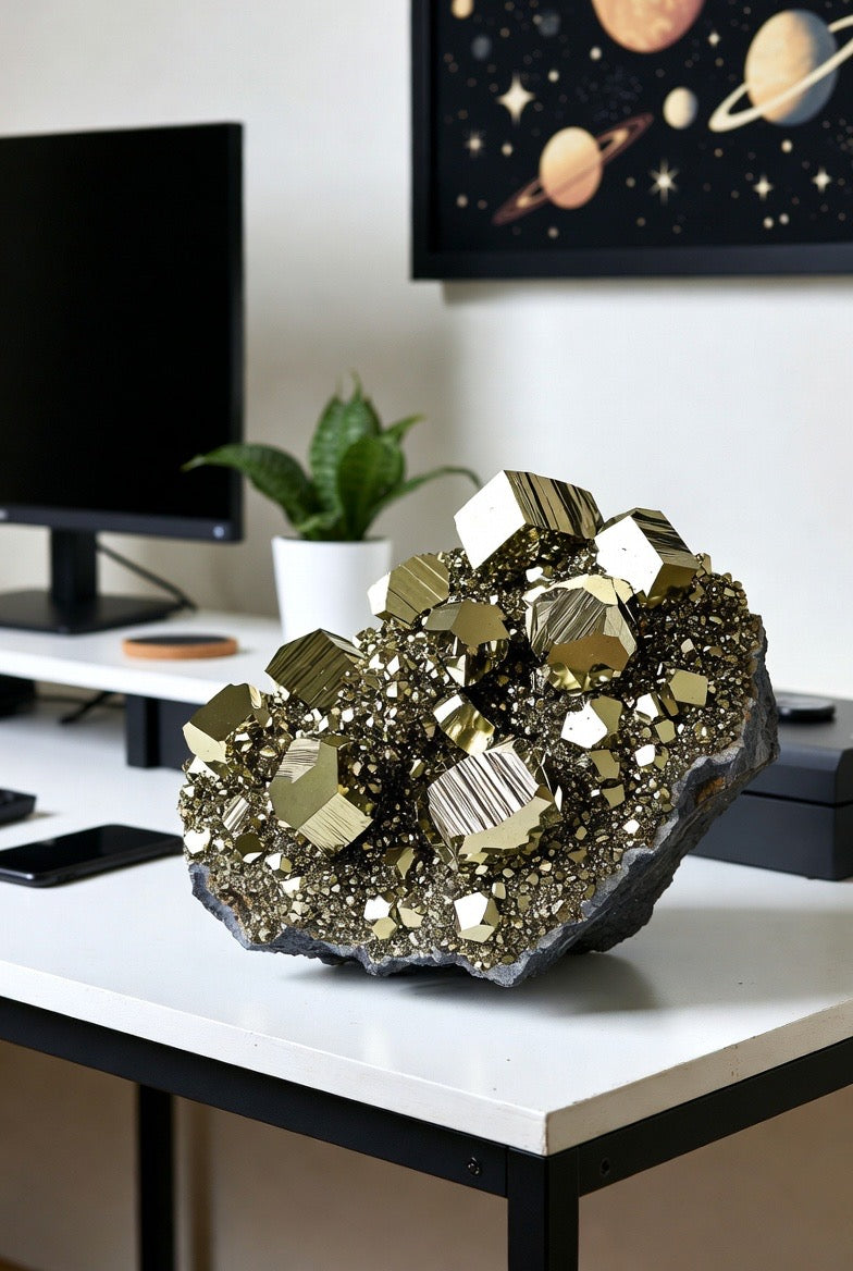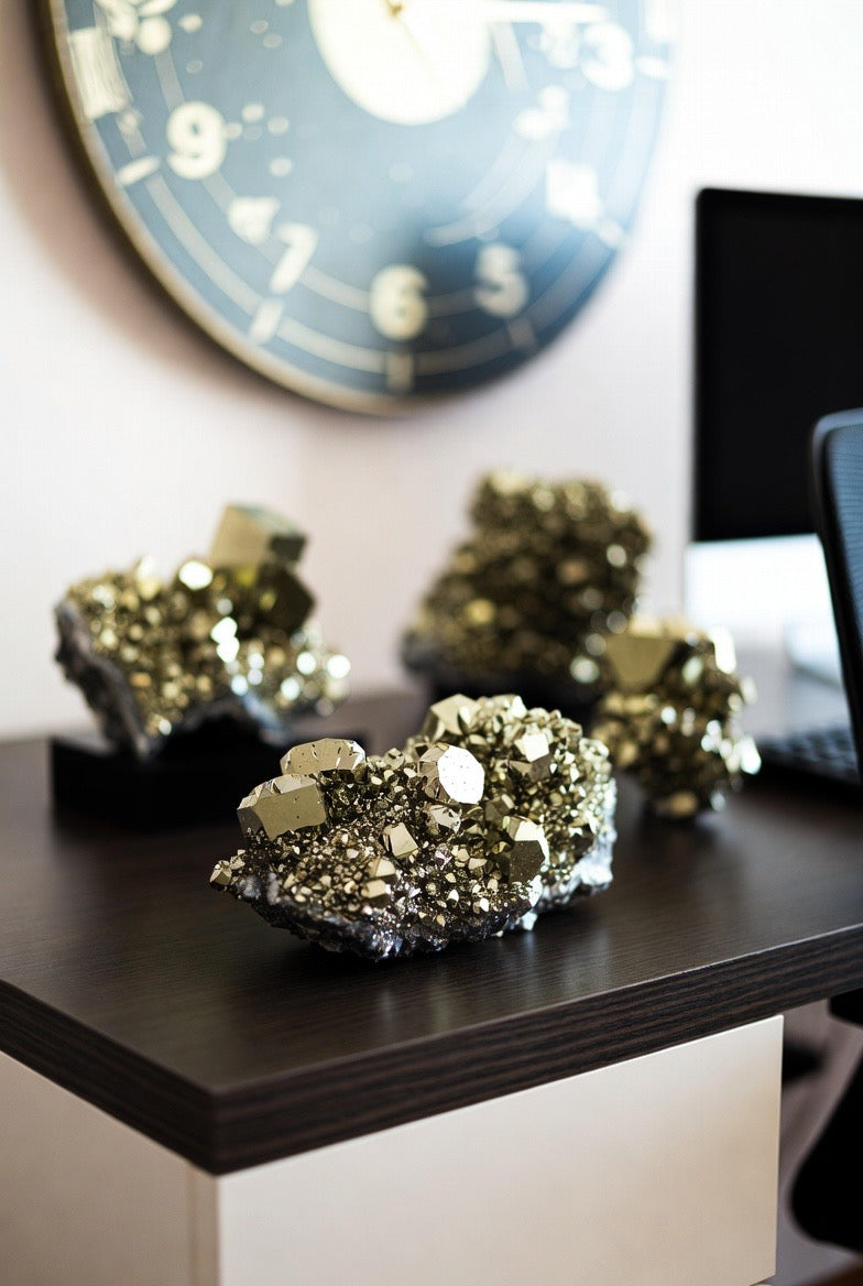 🌟 Iron Pyrite Cluster – The Stone of Abundance Meets Design Elegance 🌟