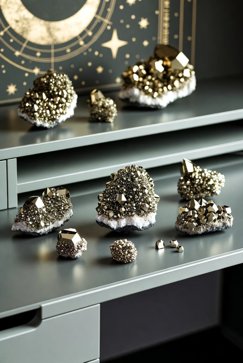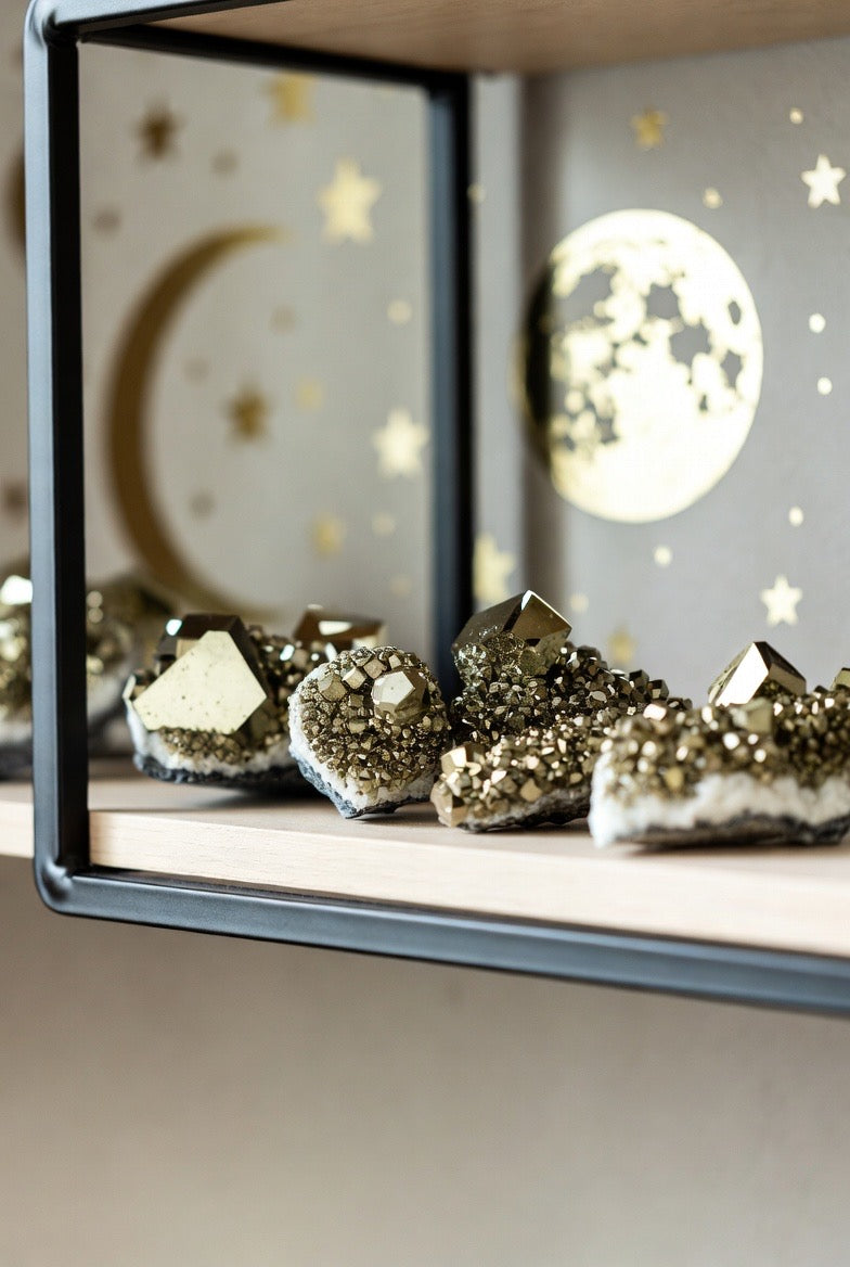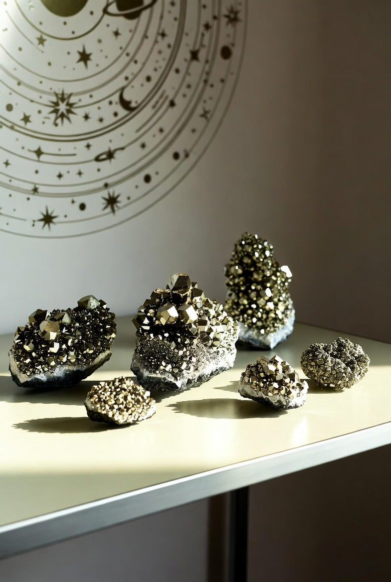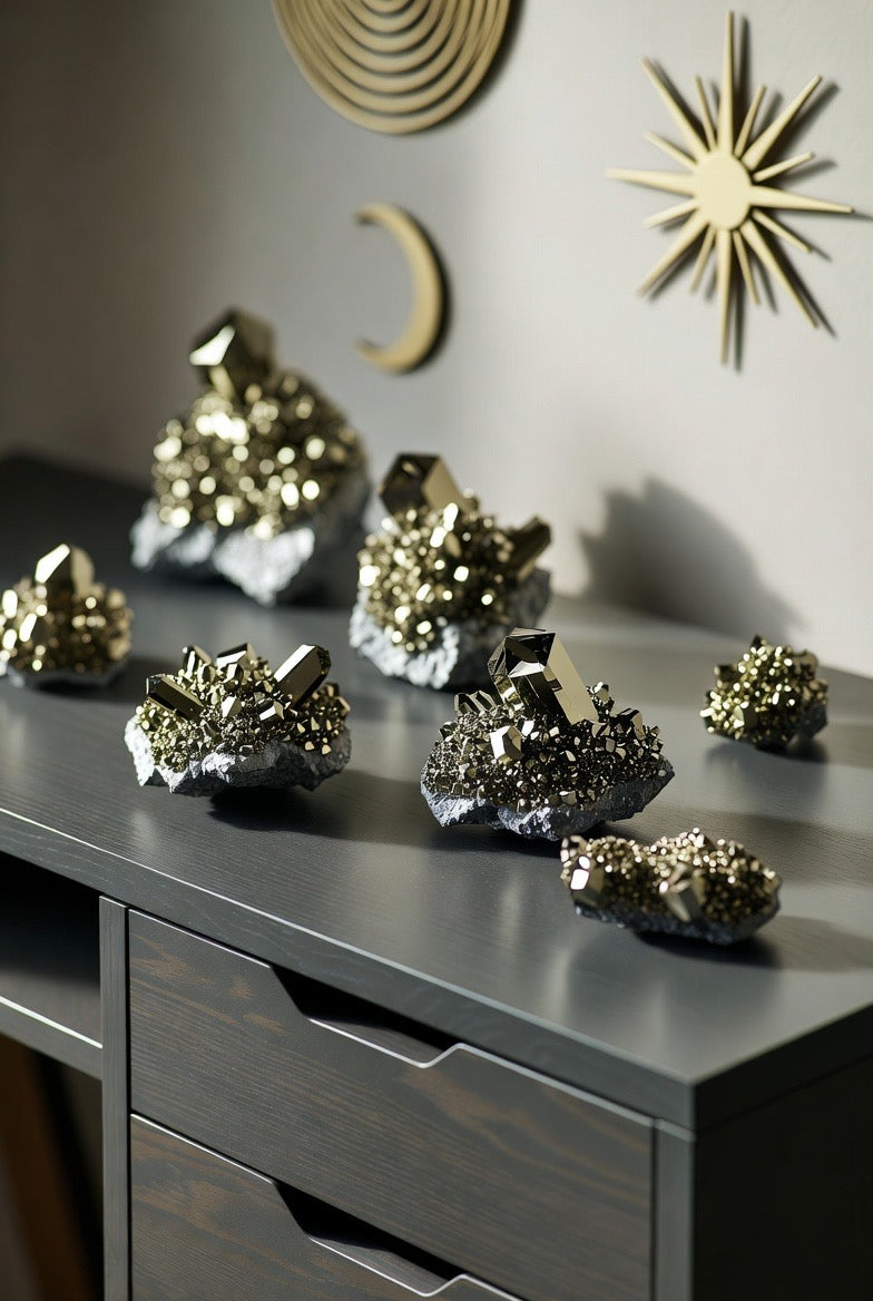 🌟 Iron Pyrite Cluster – The Stone of Abundance Meets Design Elegance 🌟