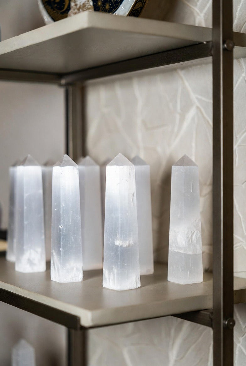- Soft, Ethereal Glow: With its natural pearlescent sheen, polished selenite softly reflects light and enhances the tranquility of any room.