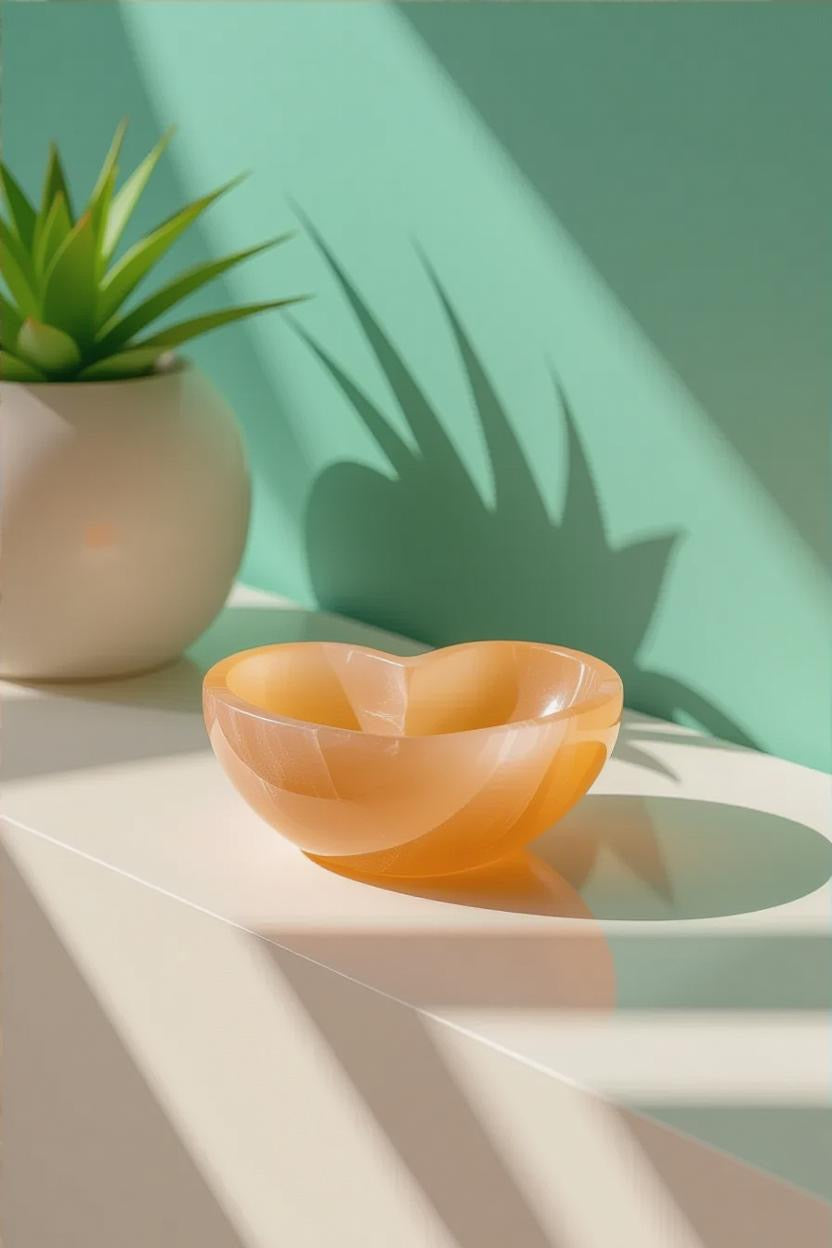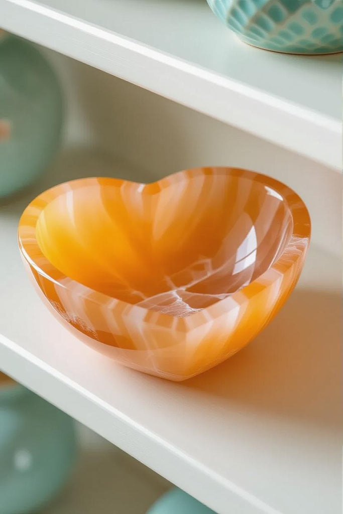Heart-Shaped Orange Calcite Bowl – Radiate Warmth, Love & Creativity