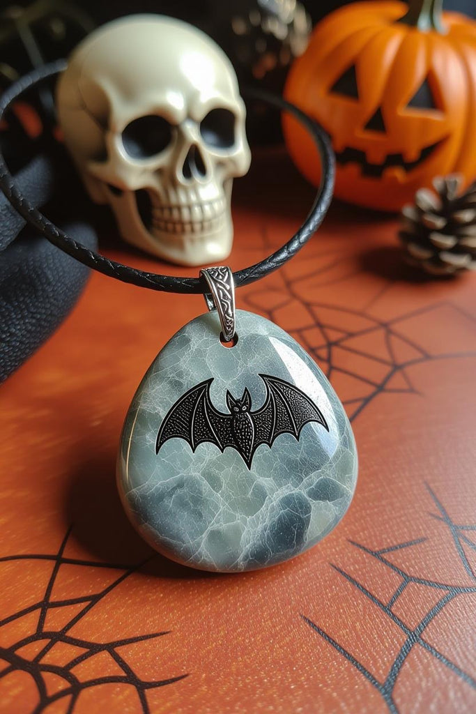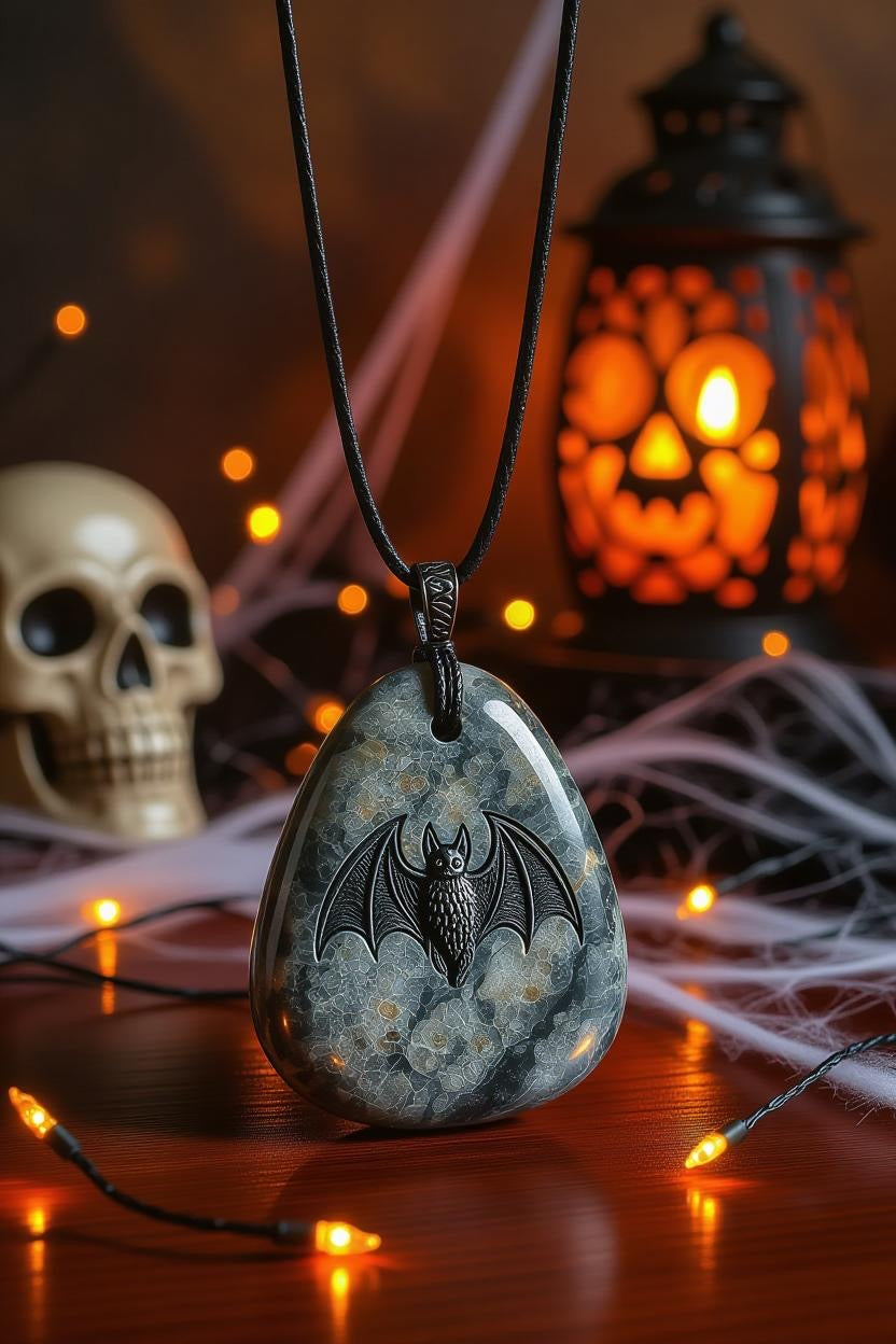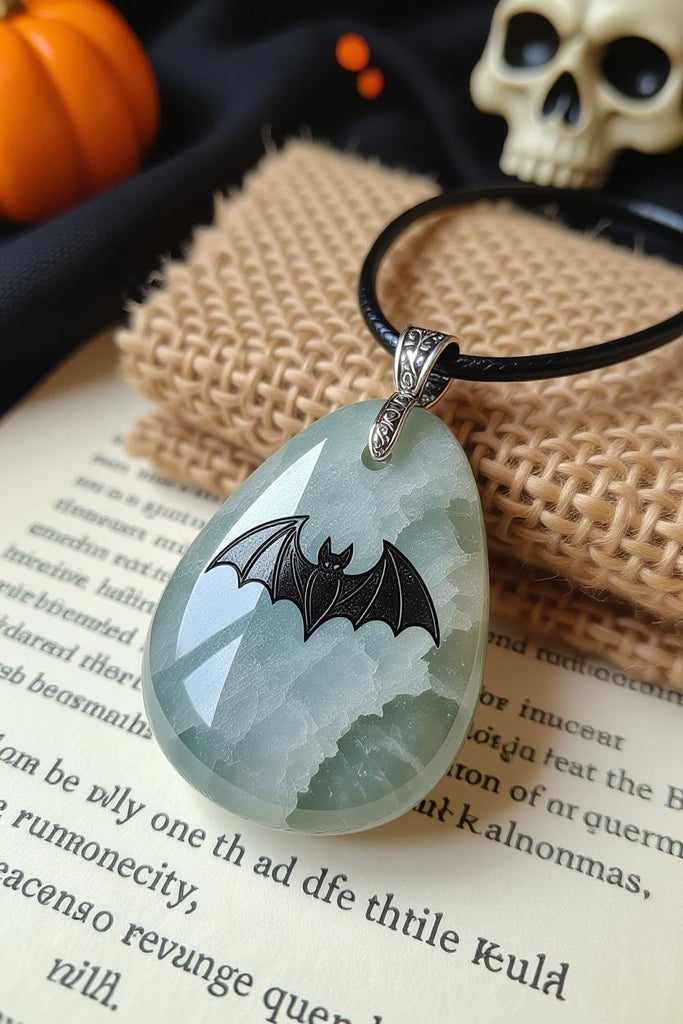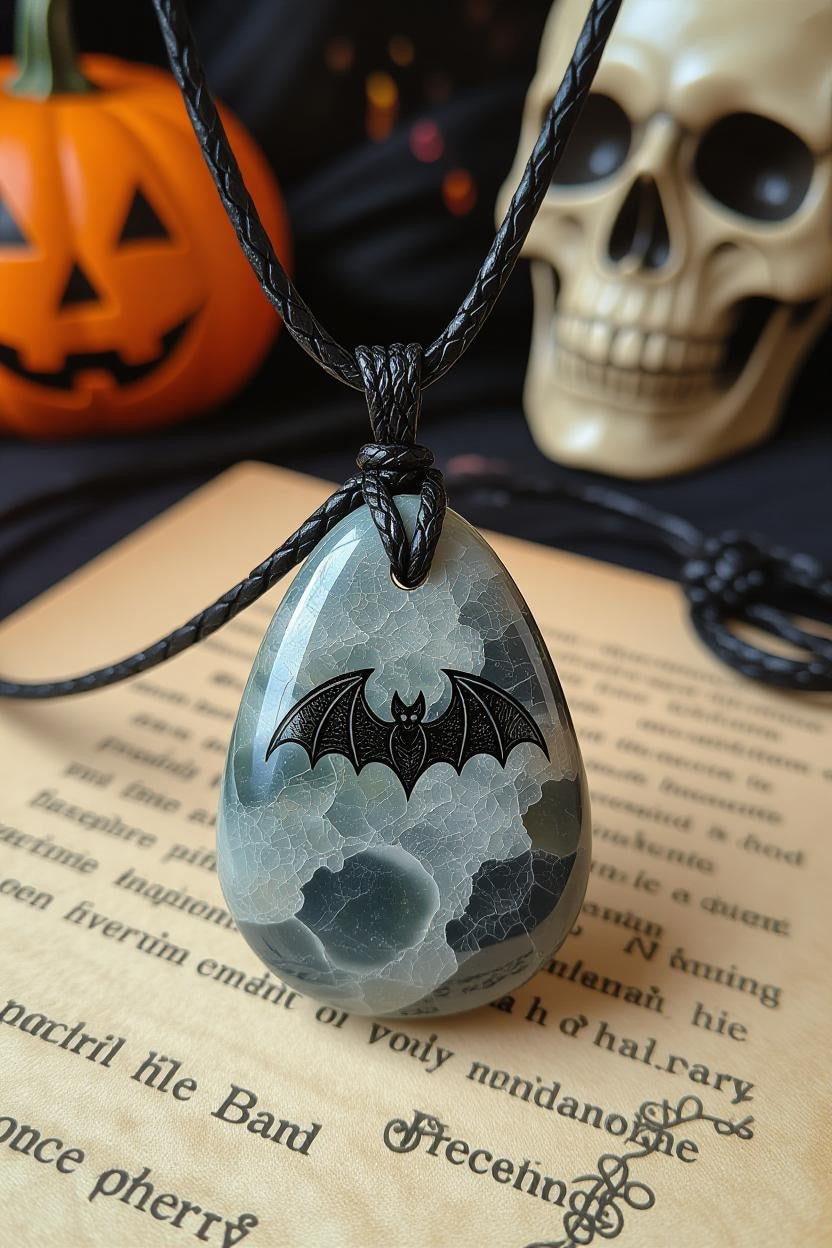 Dare to embrace the night? This Halloween, complete your spooky look with the ultimate symbol of nocturnal mystique — a Bat-Shaped Gemstone Pendant suspended on a sleek black leather cord.