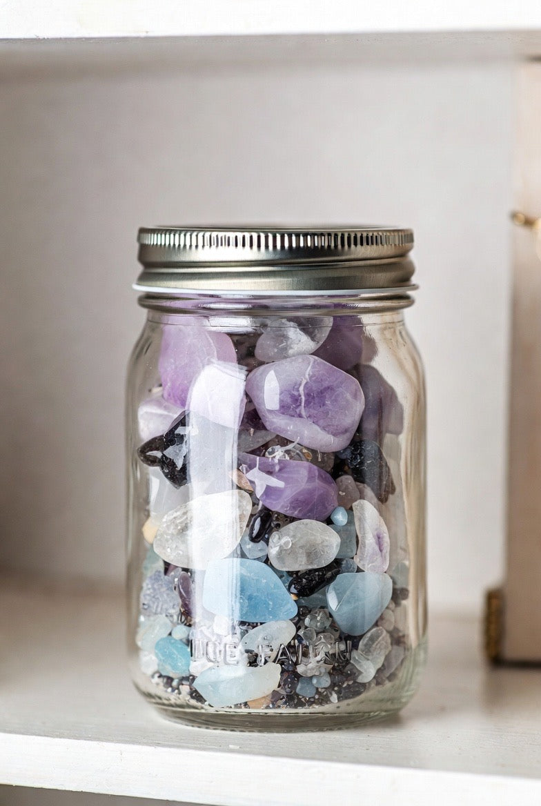 This listing is for 1 (one) Pint Size Mason Jar of Crystals. Yours will arrive lovingly parceled and ready for enjoyment!