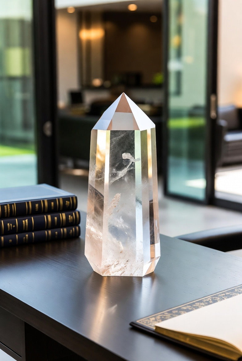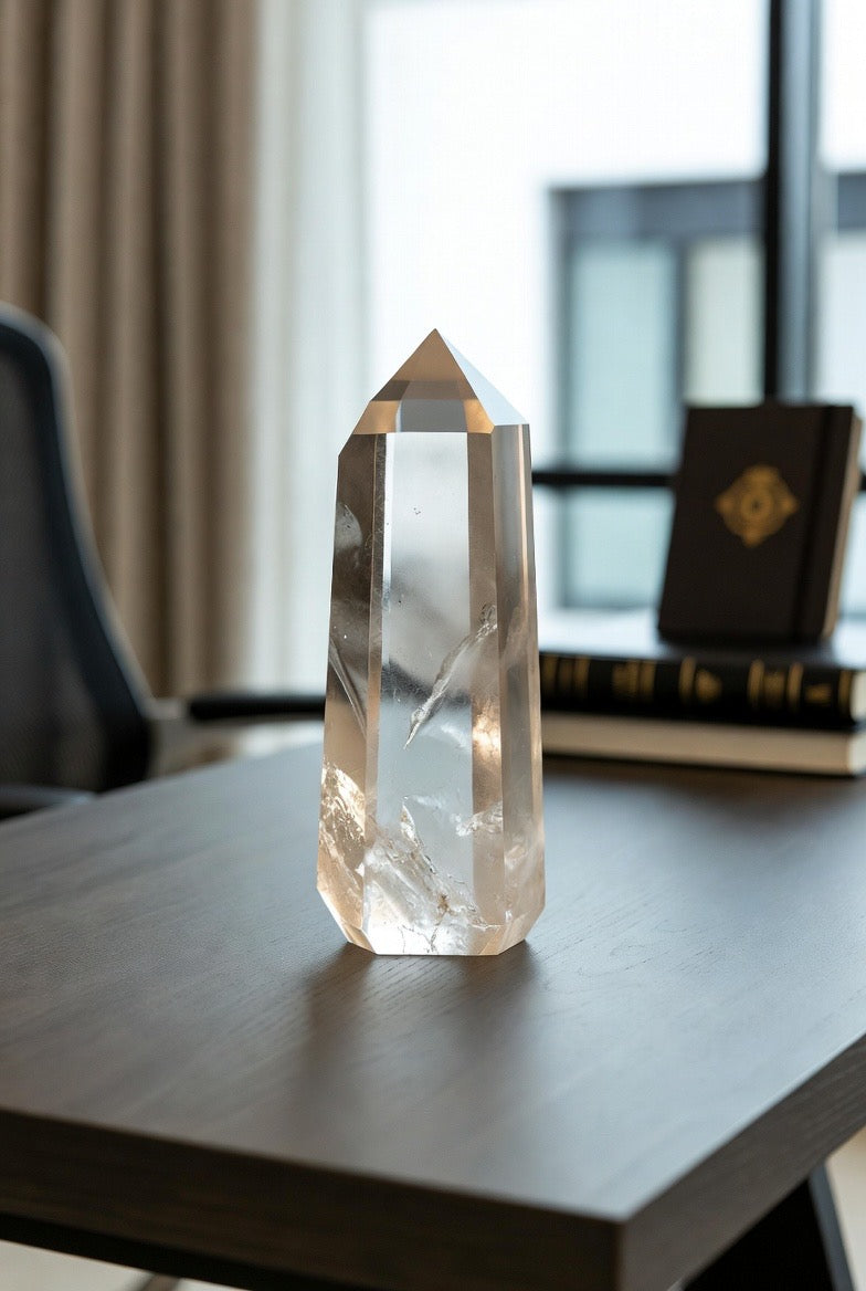 ✨ Elevate Your Office Space with a Polished Clear Quartz Point ✨