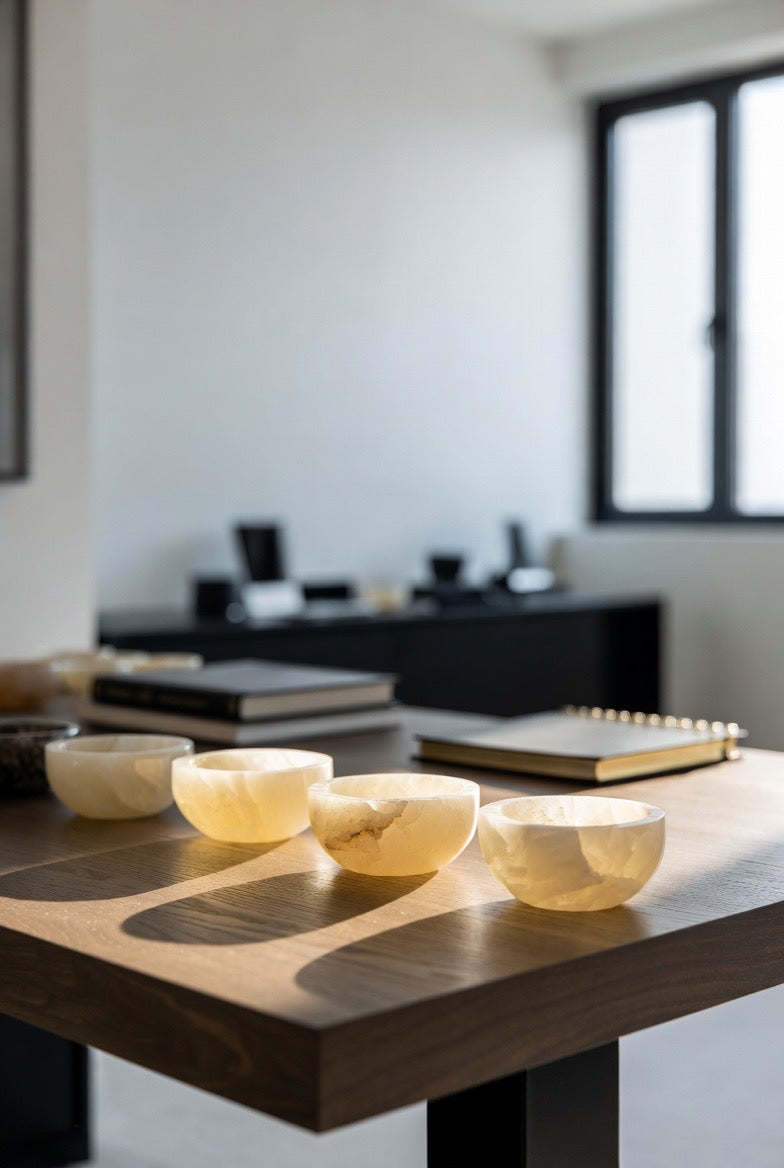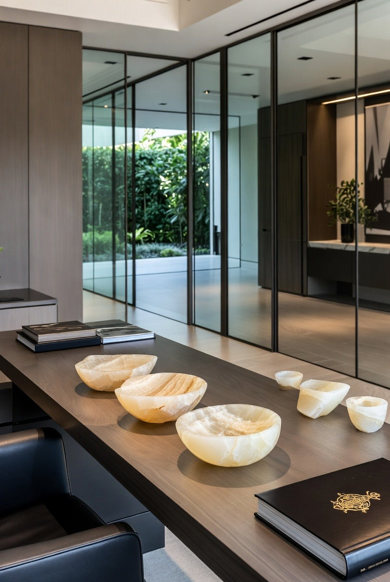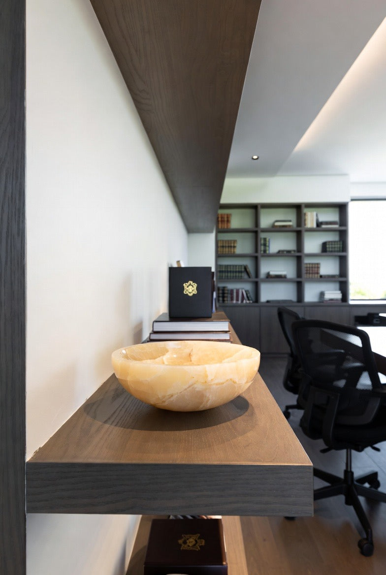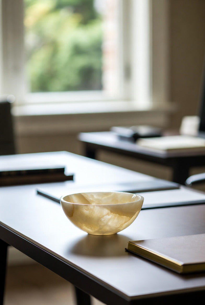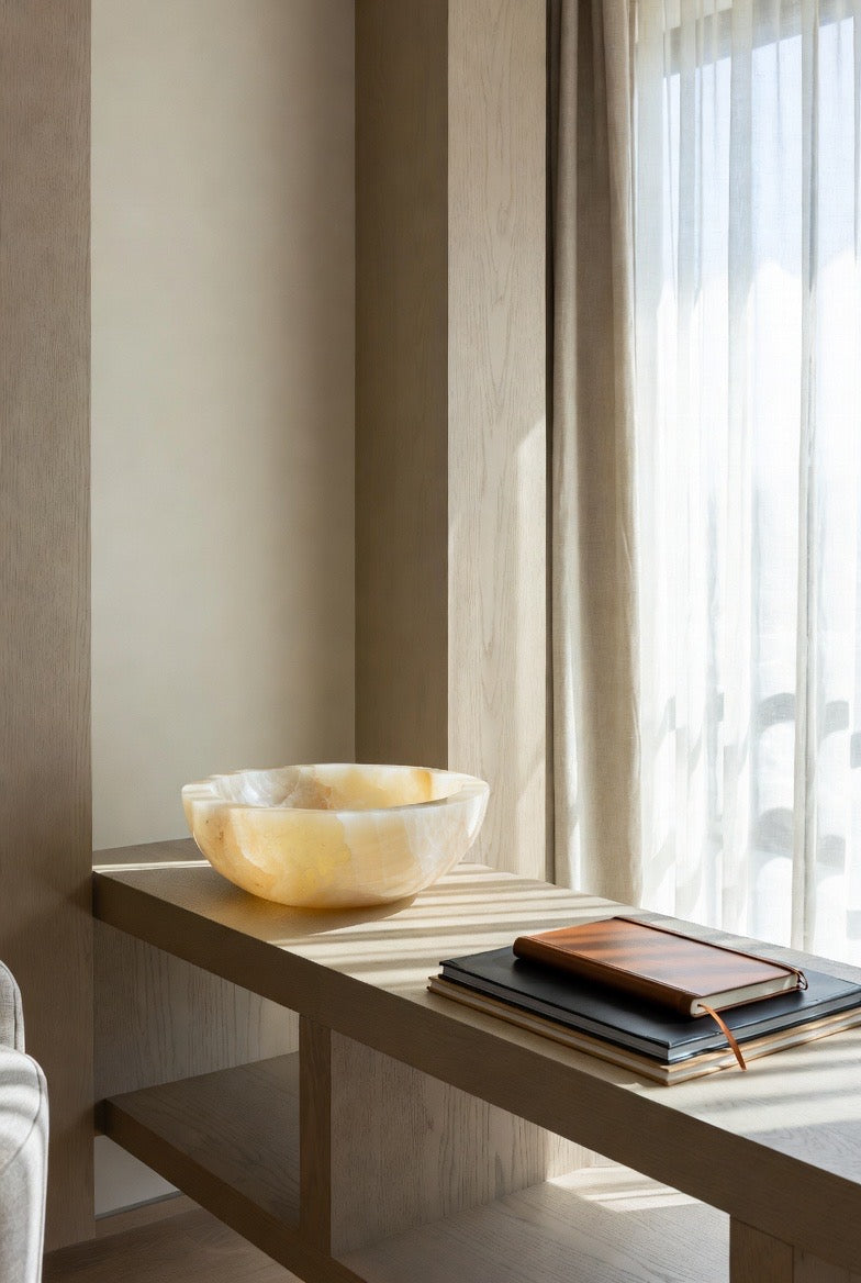 Bring calm, earthy sophistication into your space with our Natural Neutral Onyx Bowl, hand-carved from genuine light-toned onyx. With delicate swirls of cream, ivory, beige, and honey, each bowl is a one-of-a-kind statement in understated luxury.