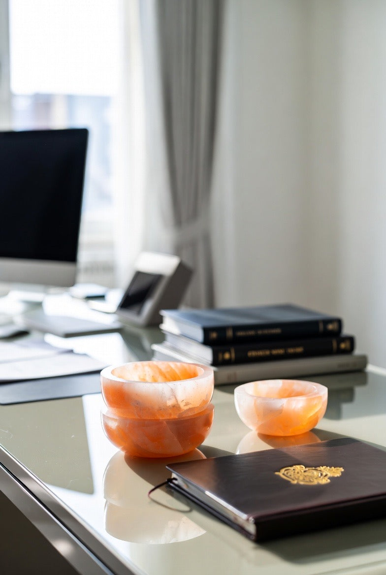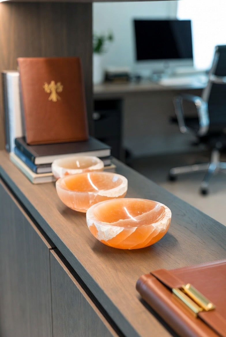 ORANGE SELENITE BOWL FOR OFFICE